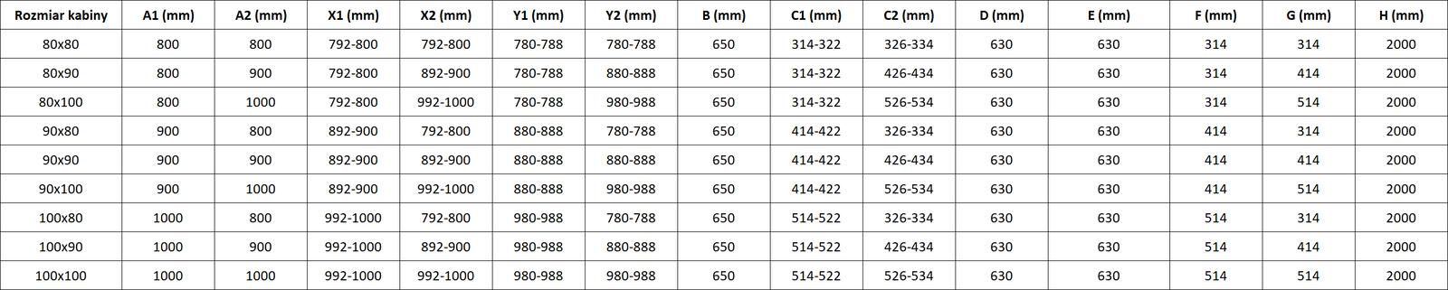 Rozměr: 100x90 cm (levé dveře 100 cm, stěna 90 cm)
