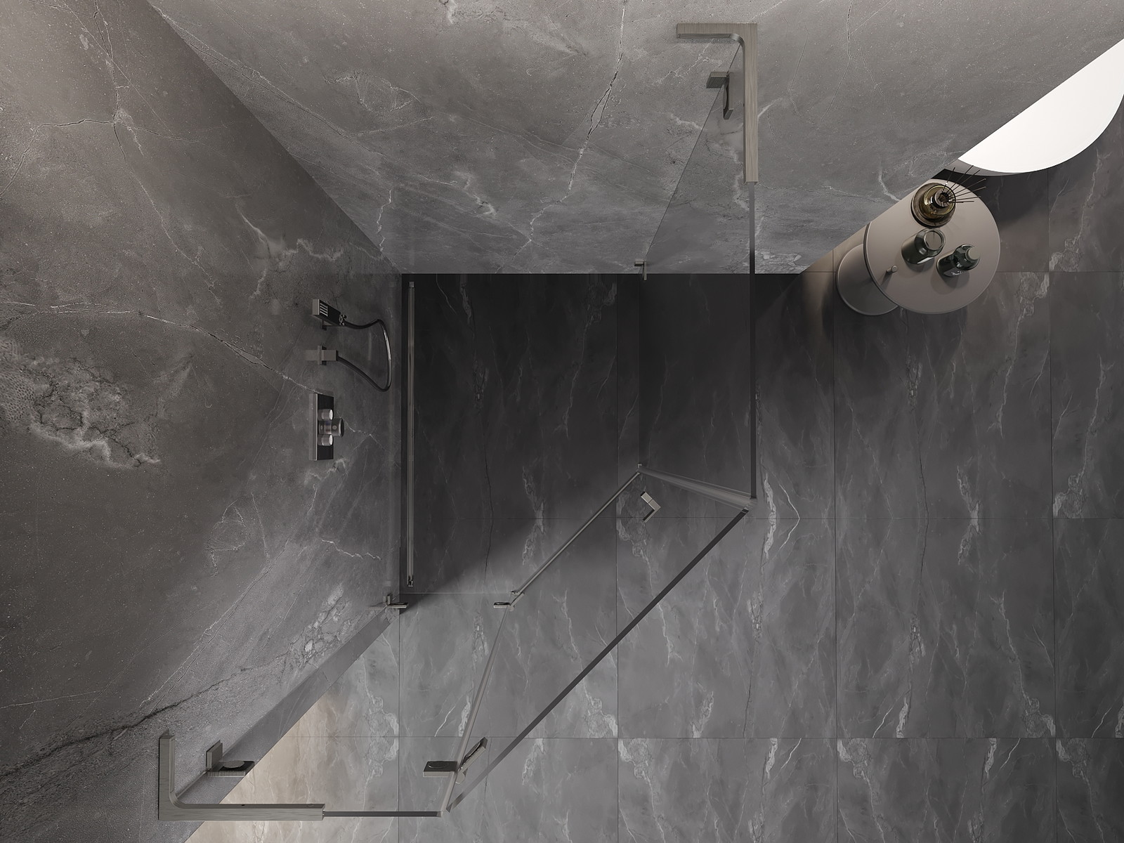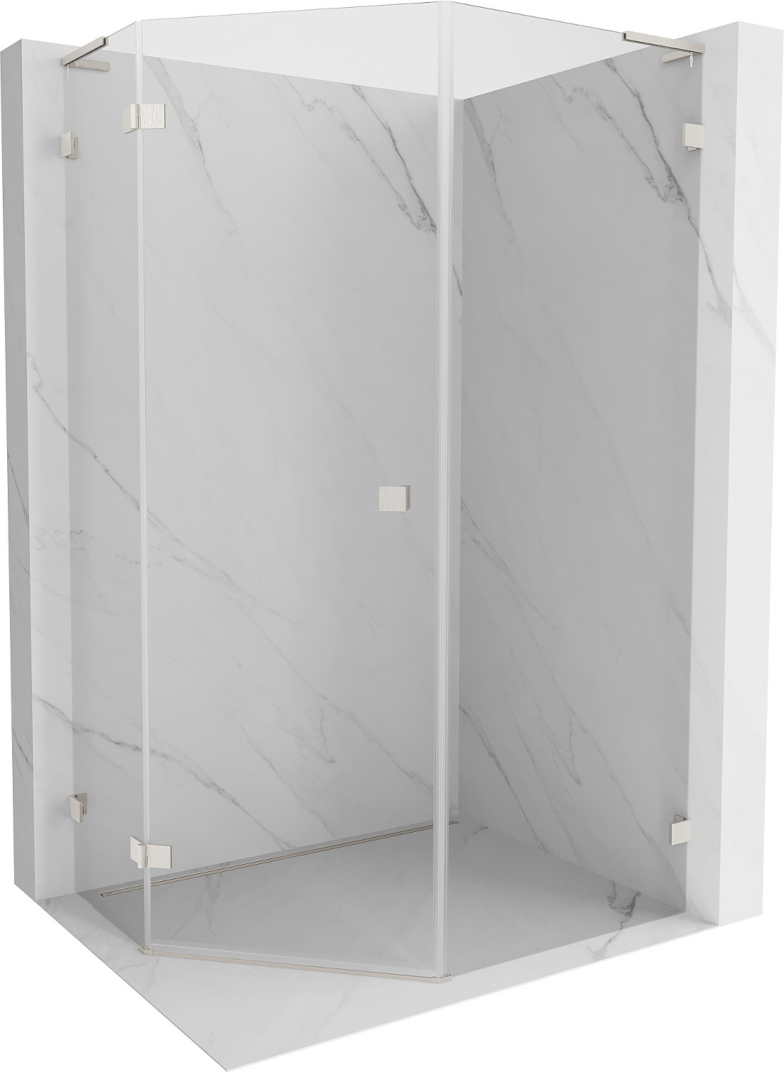 Mexen Lunar L pětiúhelníková sprchová kabina výklopná levá 80 x 100 cm, transparentní, kartáčovaný nikl