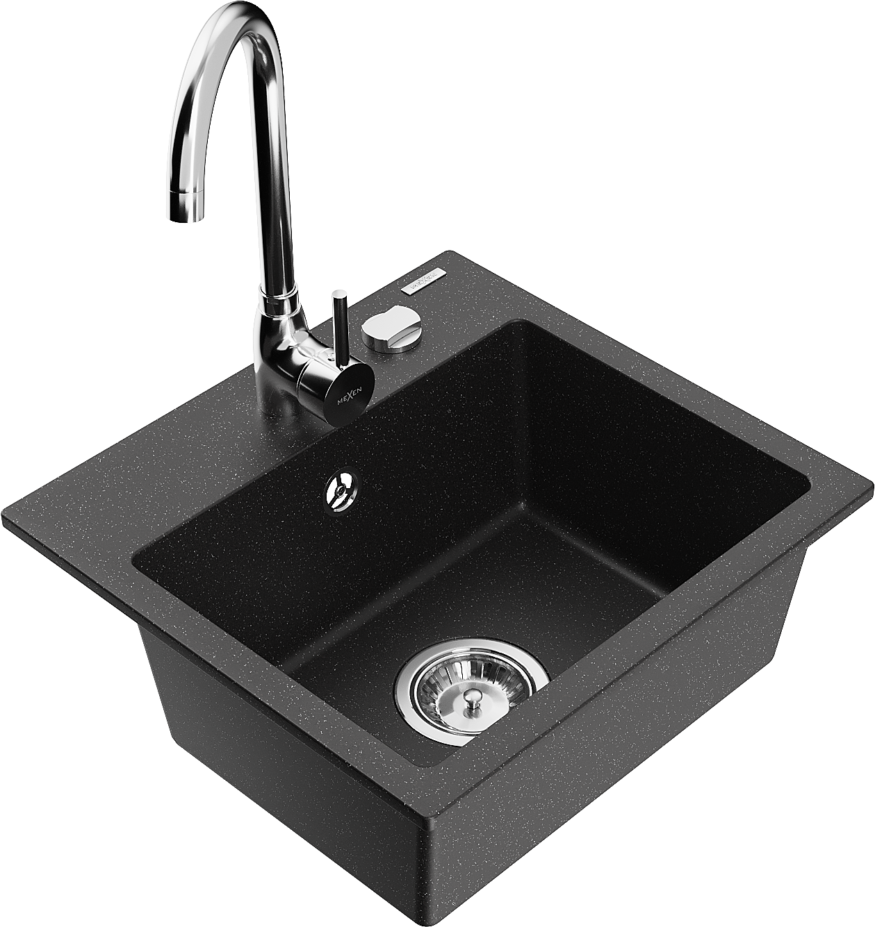 Mexen Milo granitový jednodřez s kuchyňskou baterií Telma, černý/stříbrný - 6505-73-670200-00