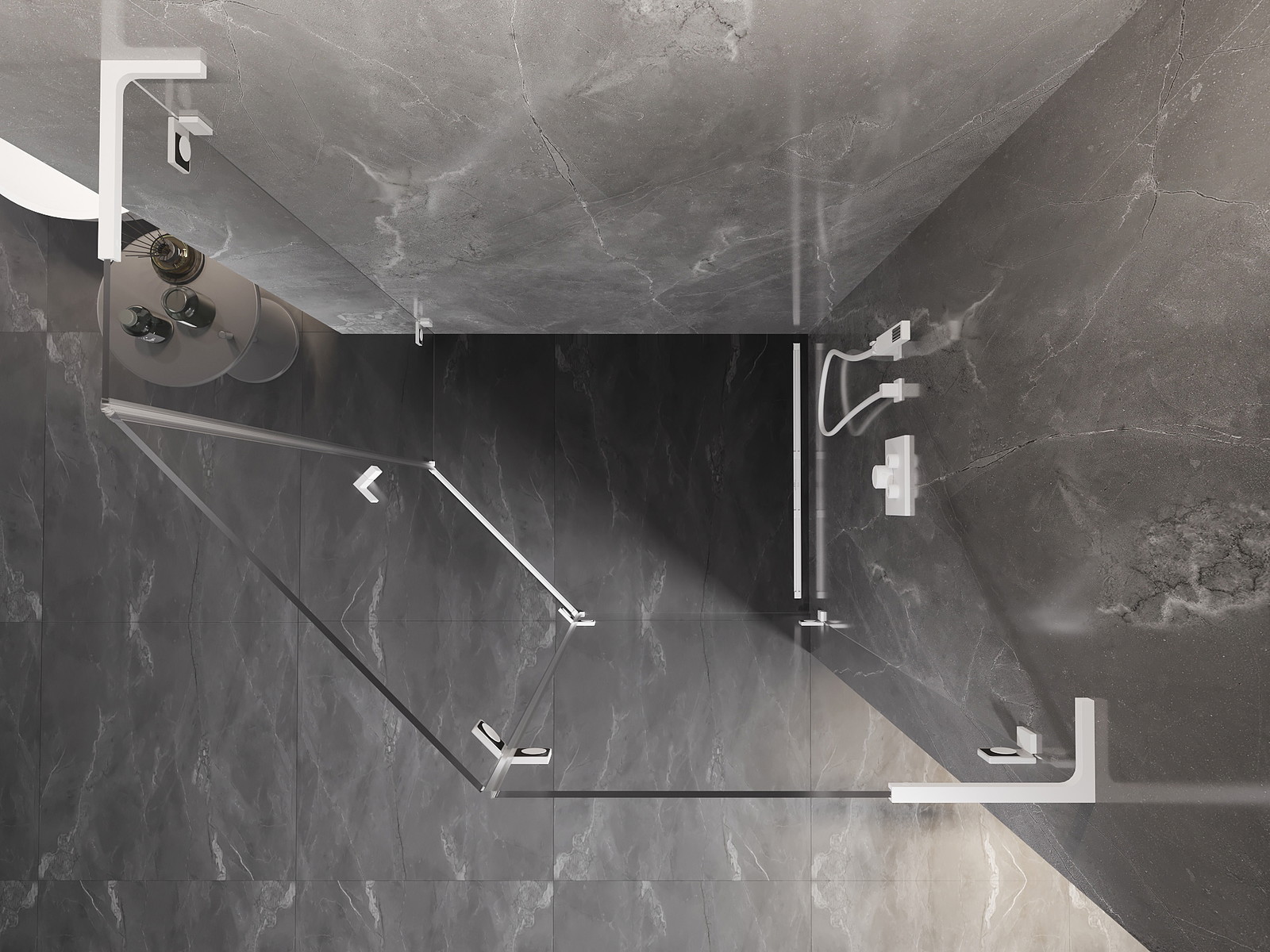Mexen Lunar L sprchový kout pětiúhelníkový otevíratelný pravý 100 x 80 cm, transparentní, bílý
