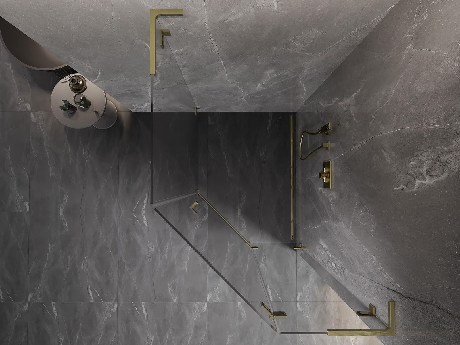 Mexen Lunar L pětiúhelníkový sprchový kout výklopný pravý 80 x 90 cm, transparentní, zlatý kartáčovaný