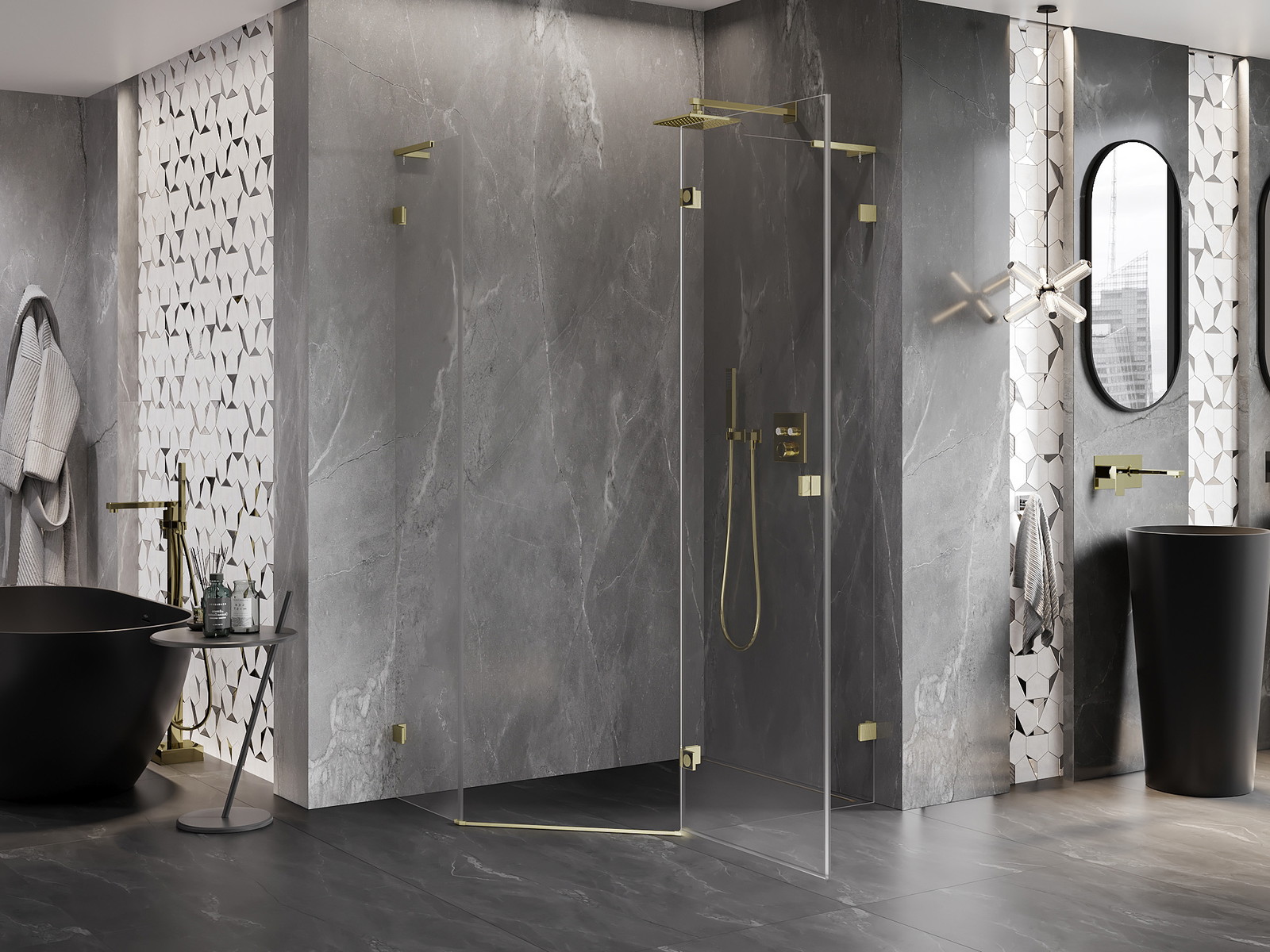 Spony a závěsy byly vyrobeny z velmi odolné mosazi a navíc vytvářejí zarovnanou plochu skla. Je to vynikající volba, která kombinuje eleganci, odolnost a moderní design. Díky těmto řešením získává sprcha na estetice a zároveň usnadňuje udržování čistoty.