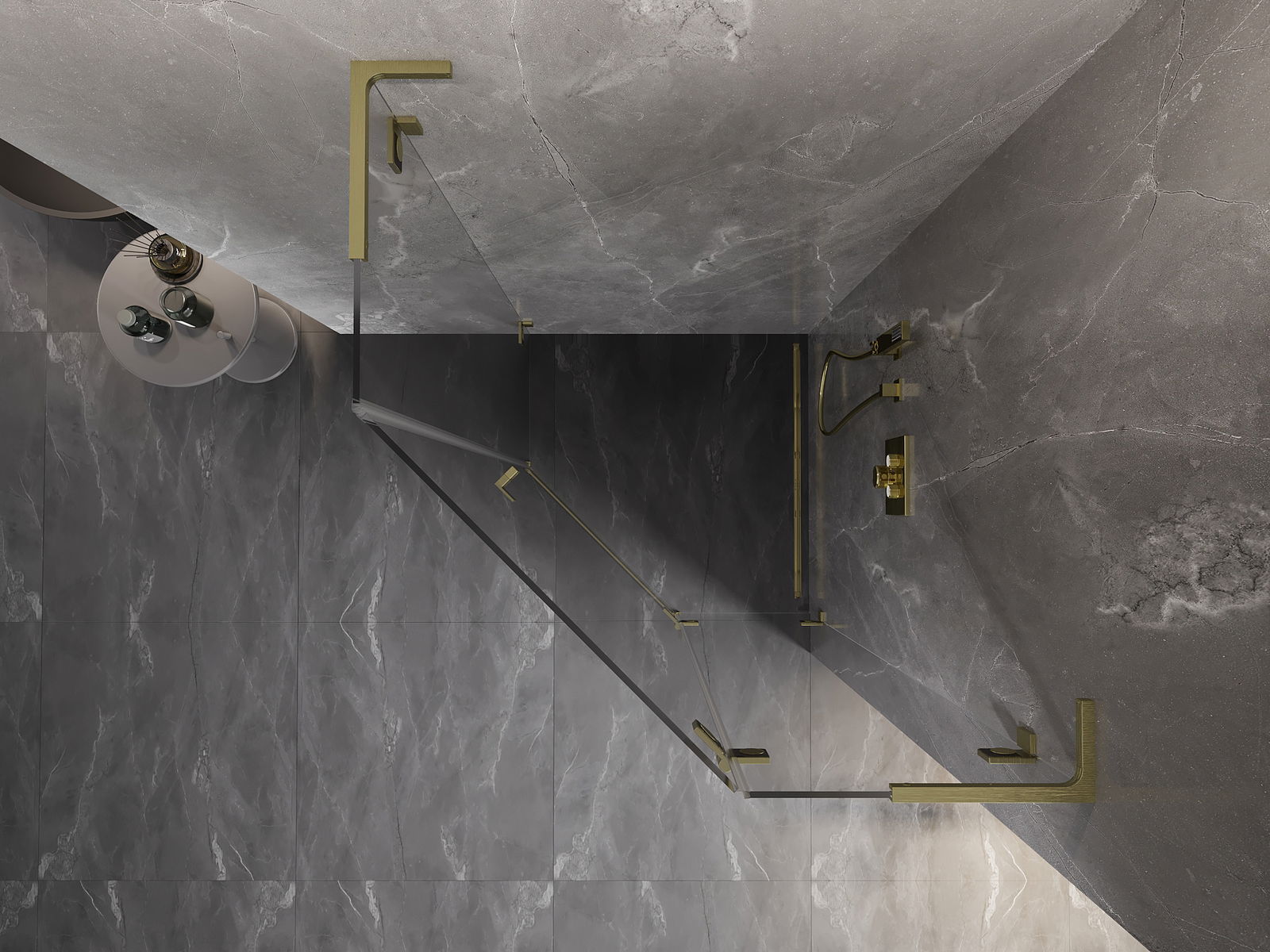 Mexen Lunar L pětiúhelníková sprchová kabina pravá 90 x 90 cm, transparentní, kartáčované zlato - 831L-090P-090L-55-00-P