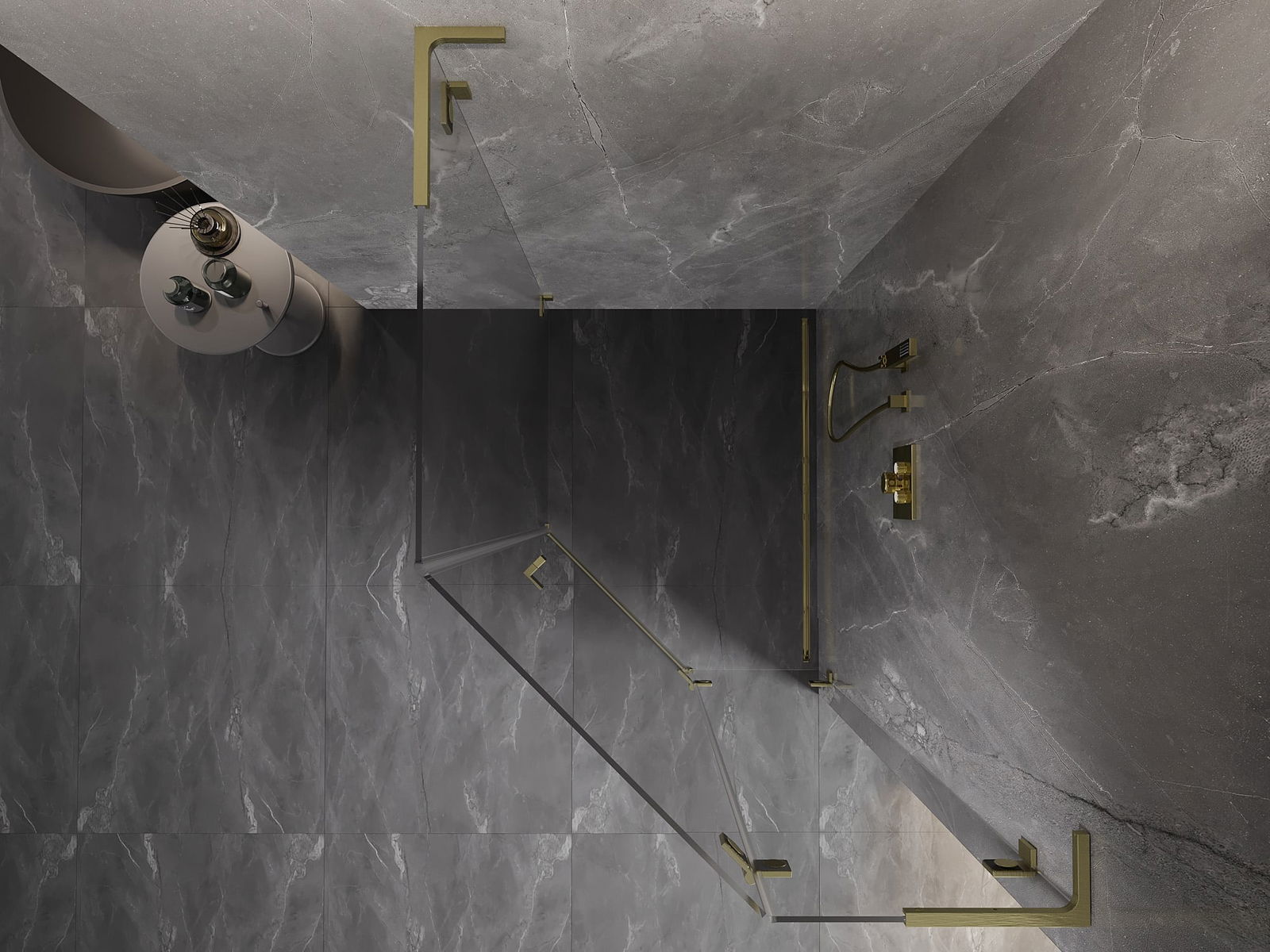 • Mexen Lunar L pětiúhelníková sprchová kabina otočná pravá 90 x 100 cm, průhledná, zlatá kartáčovaná - 831L-090P-100L-55-00-P