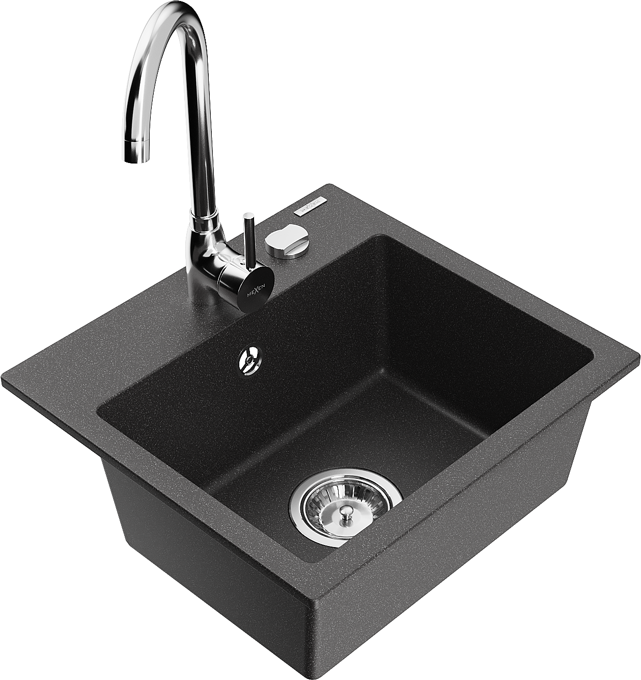 Mexen Milo granitový dřez 1-komorový s kuchyňskou baterií Telma, černý kropenatý - 6505-76-670200-00