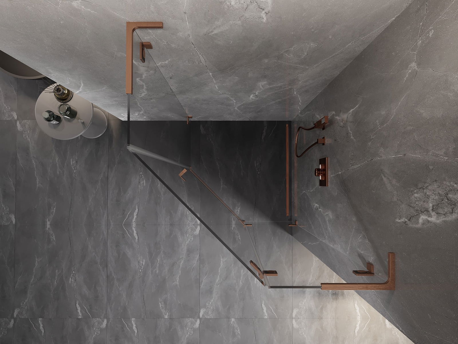 Mexen Lunar L pětiúhelníková sprchová kabina pravá 80 x 80 cm, transparentní, broušená měď - 831L-080P-080L-65-00-P