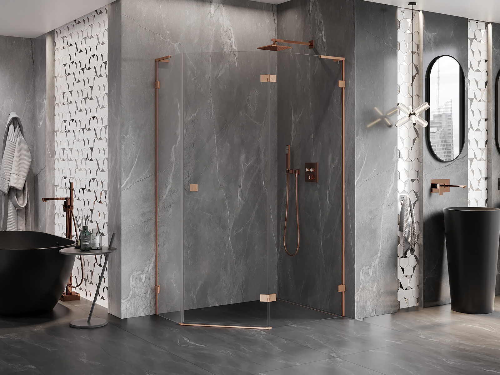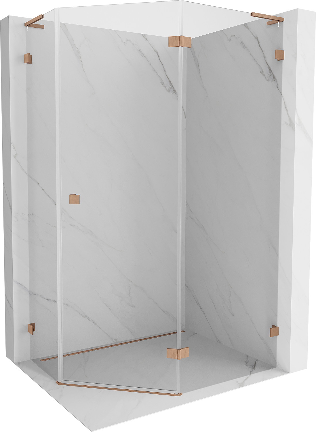 Mexen Lunar L pentagonální sprchový kout s otevíracími dveřmi pravý 100 x 80 cm, transparentní, kartáčovaná měď