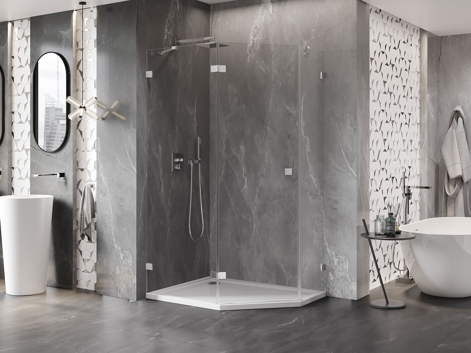 Mexen Lunar pětiúhelníkový sprchový kout s otočnými dveřmi, levý, 100 x 90 cm, transparentní, chrom - 831-100L-090P-01-00-L