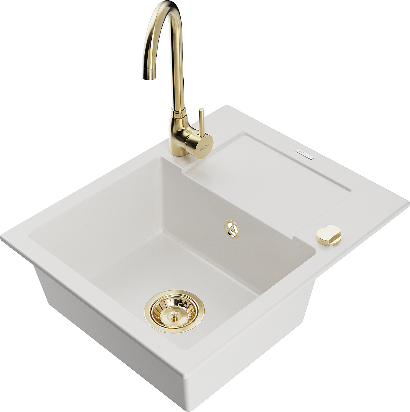 Mexen Enzo granitový dřez 1-komorový s odkapávačem a kuchyňskou baterií Telma, bílý - 6506-20-670200-50