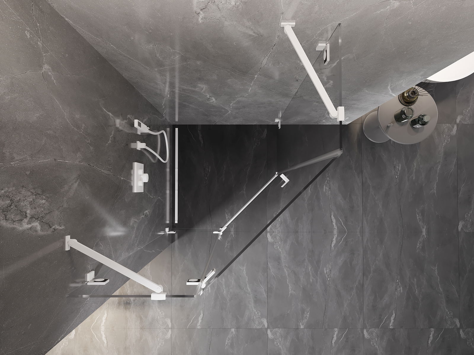 Mexen Lunar pětiúhelníková sprchová kabina sklopná levá 90 x 90 cm, transparentní, bílá - 831-090L-090P-20-00-L