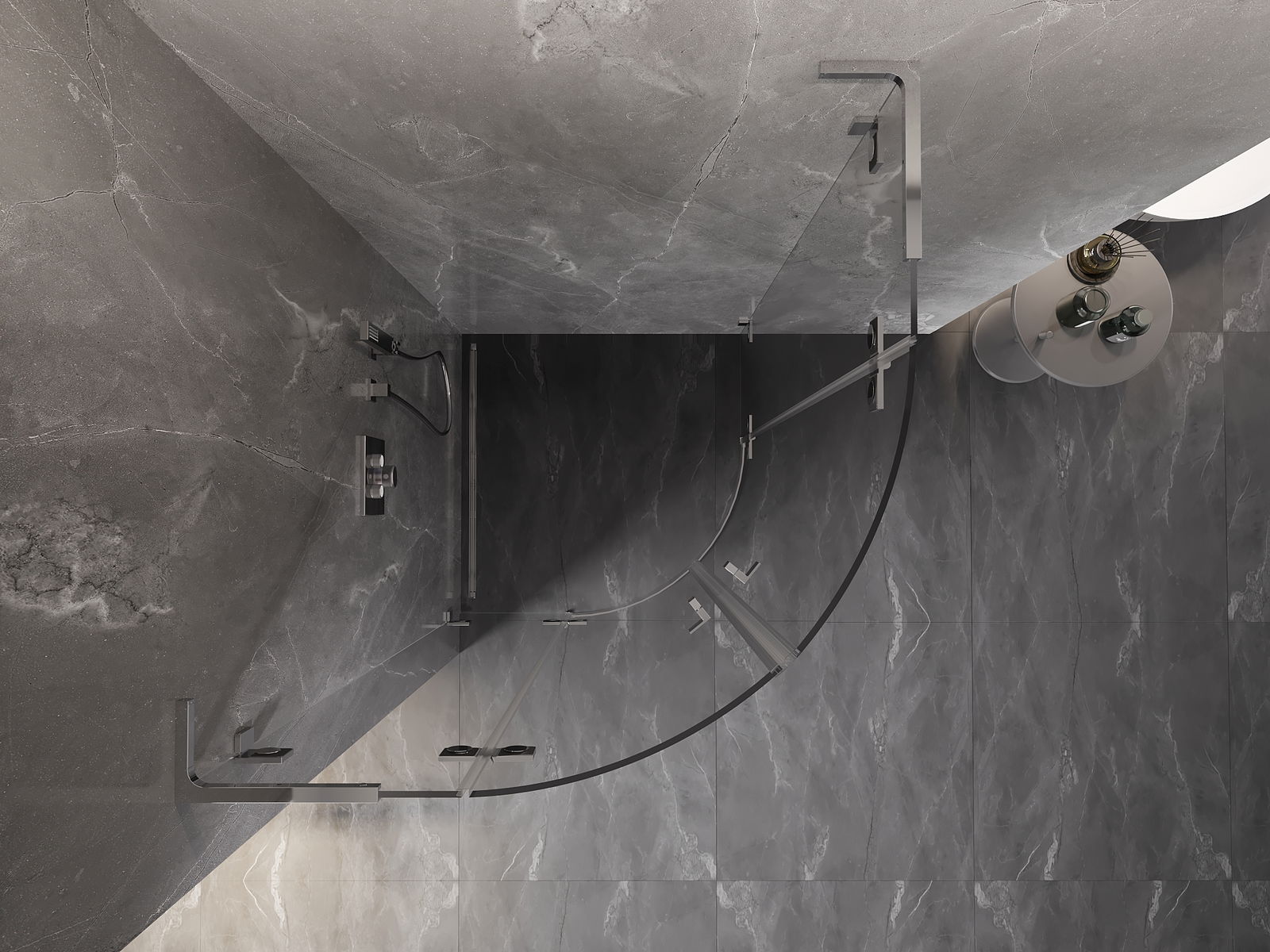 Praktická a pohodlná rukojeť je vyrobena z odolného a trvanlivého kovu. Moderní tvar ve spojení s povrchovou úpravou, která ladí s barvou profilů, dodává celku moderní a stylový vzhled, zdůrazňující estetiku každé koupelny.