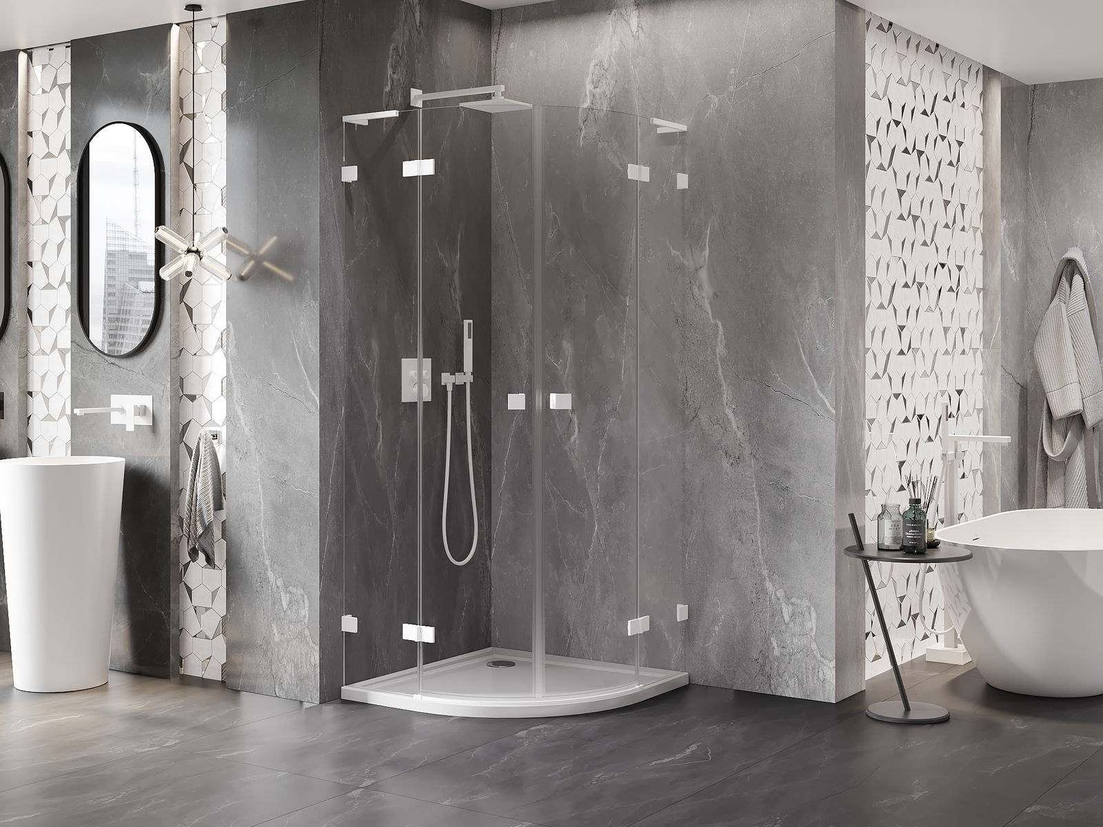 Mexen Lunar L půlkruhová sprchová kabina otvírací 90 x 90 cm, transparentní, bílá - 833L-090L-090P-20-00