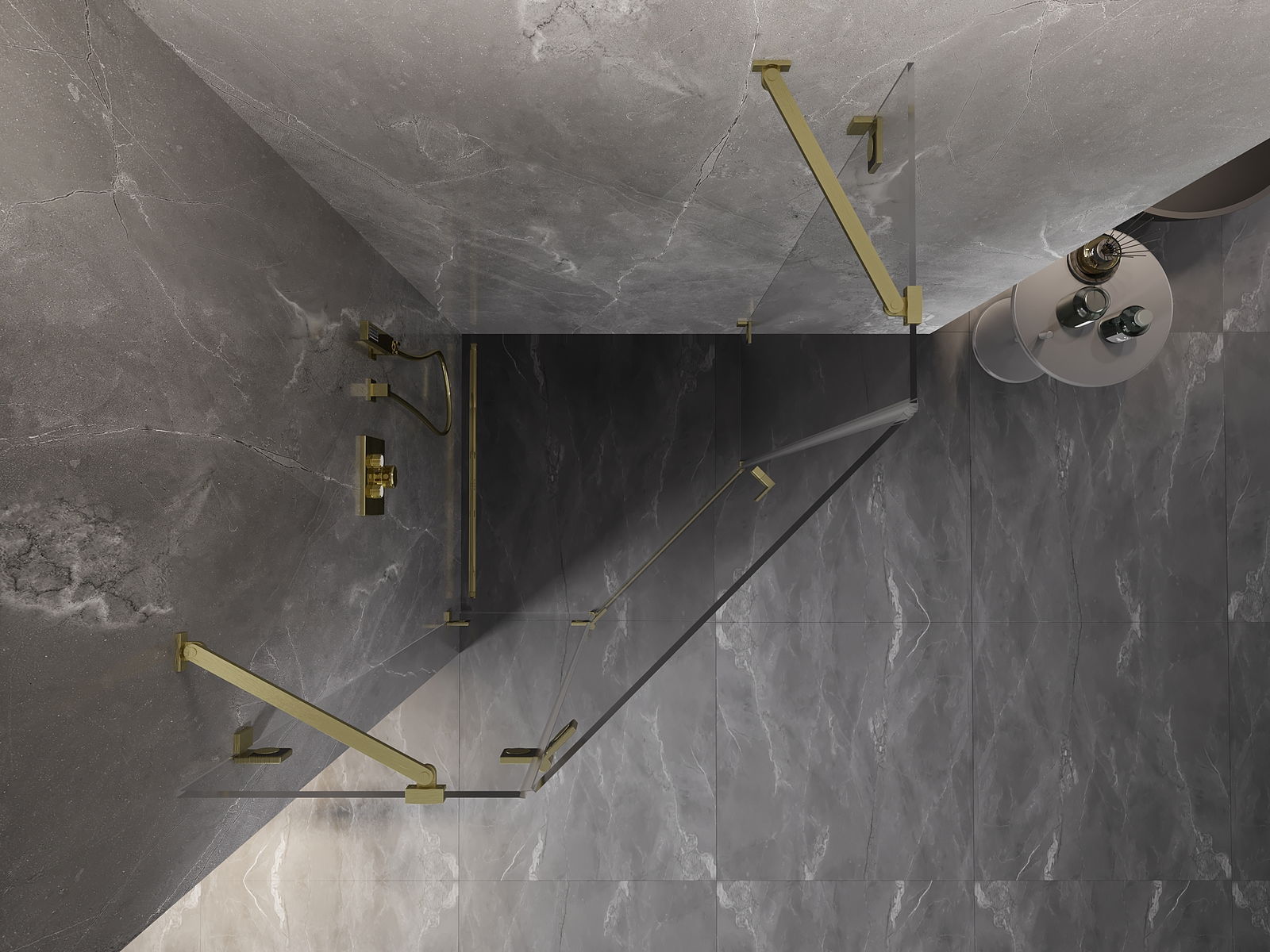 Mexen Lunar kabina sprchová pětiúhelníková otočná levá 80 x 80 cm, transparentní, zlatá kartáčovaná