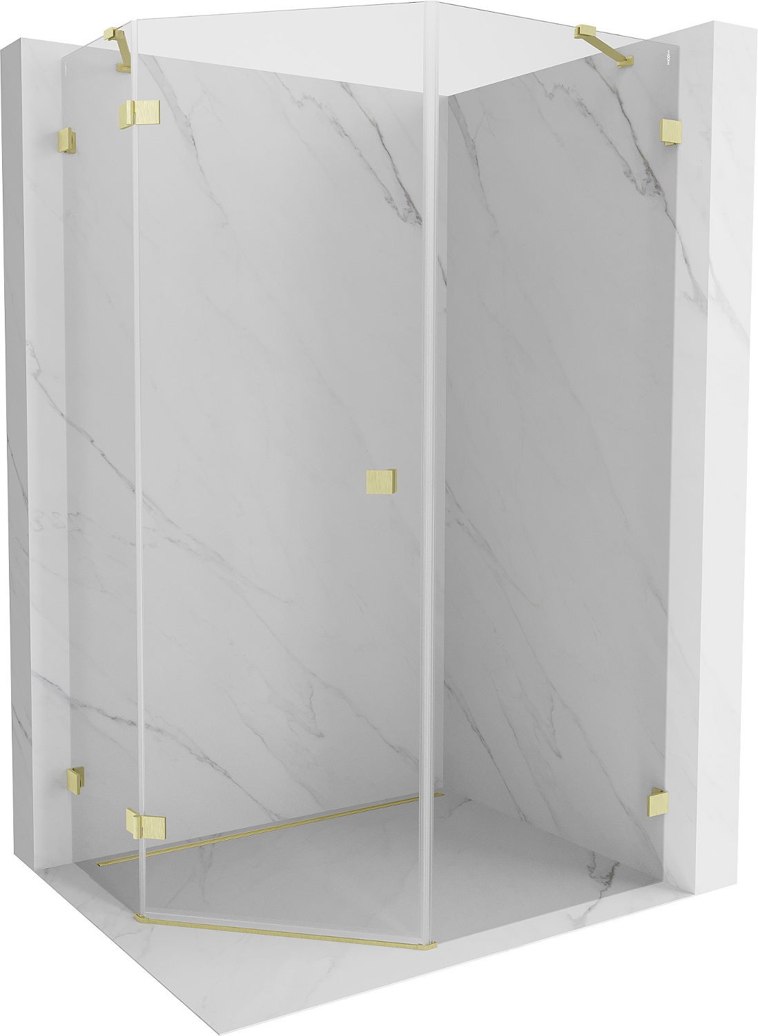 Mexen Lunar pětiúhelníková sprchová kabina otevírací levá 90 x 100 cm, transparentní, zlato kartáčované - 831-090L-100P-55-00-L