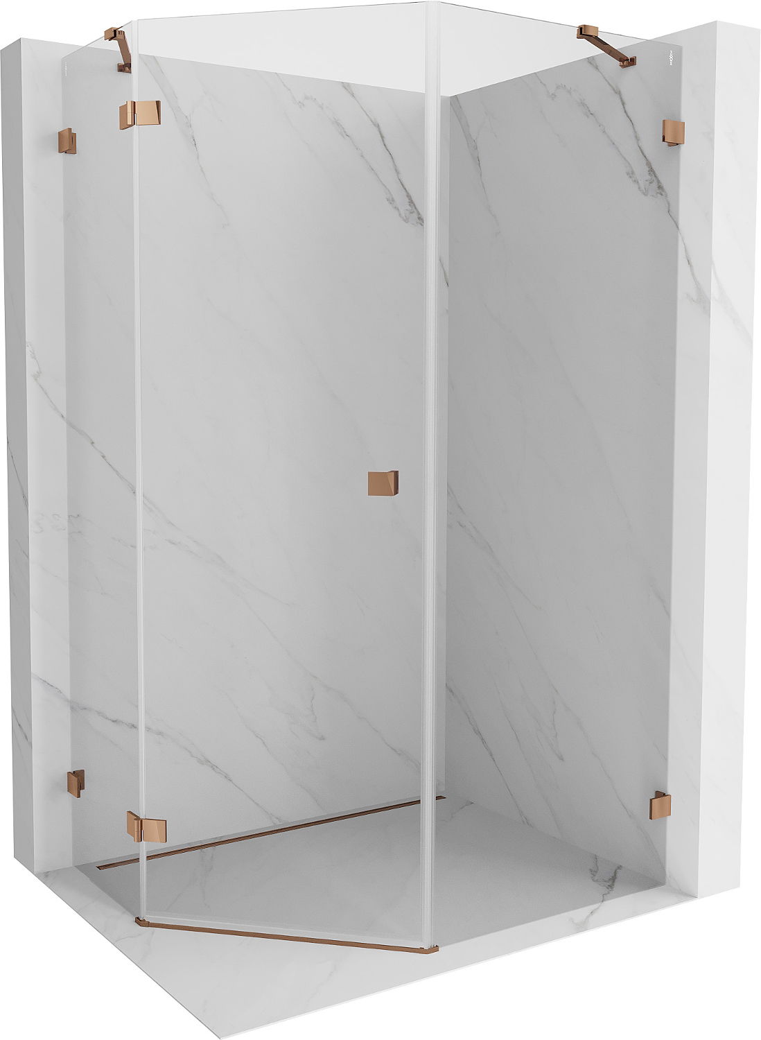 Mexen Lunar kabina sprchová pětiúhelníková otevíratelná levá 80 x 100 cm, transparentní, růžové zlato