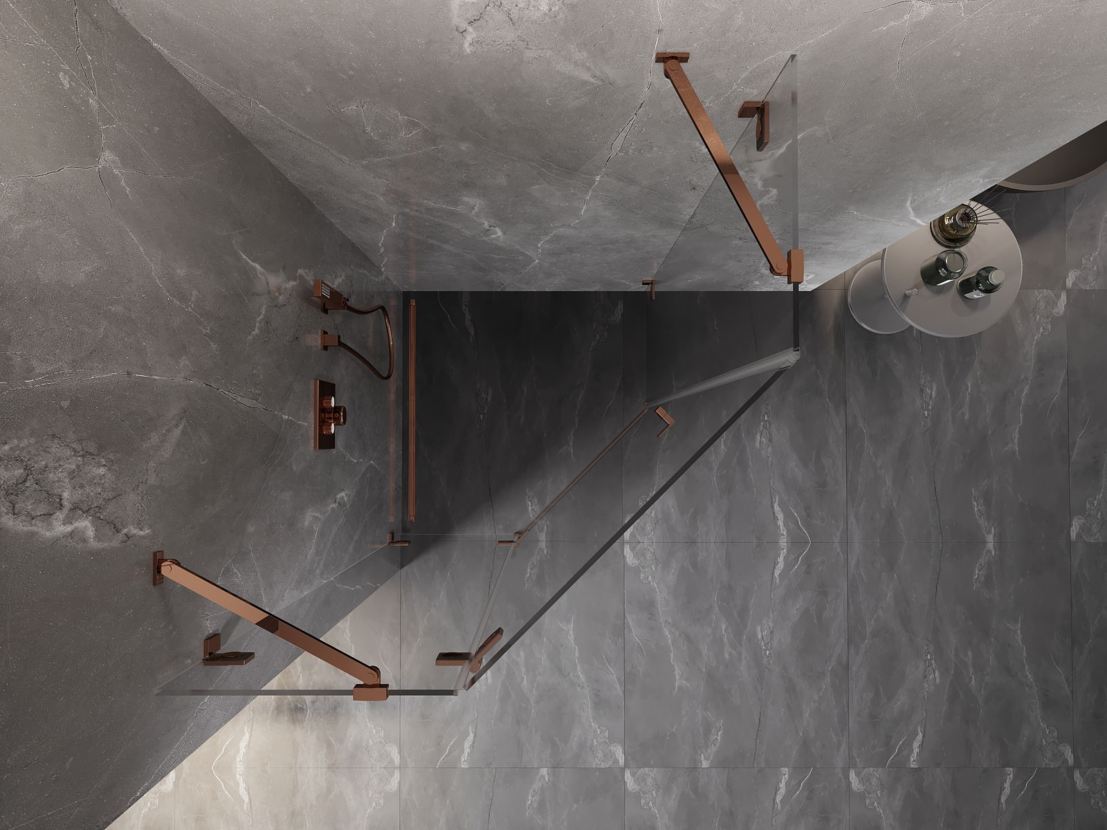Mexen Lunar pětiúhelníkový sprchový kout výklopný levý 100 x 100 cm, transparentní, růžové zlato - 831-100L-100P-60-00-L
