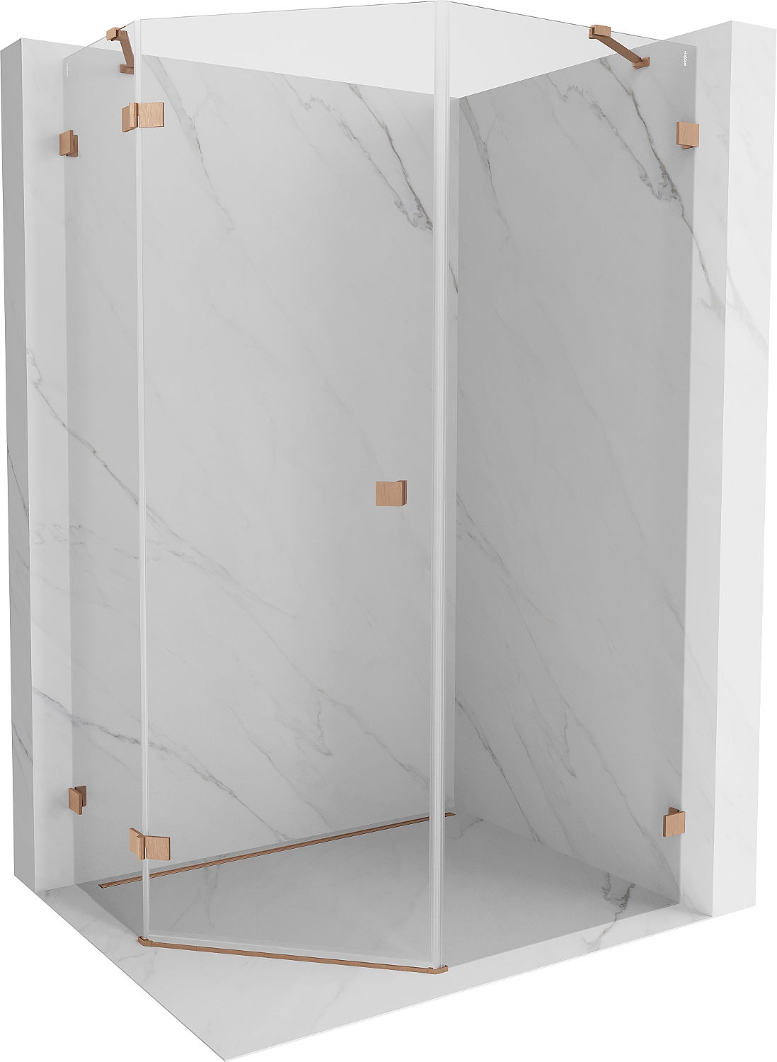 Mexen Lunar pentagonální sprchový kout s otevíracími dveřmi vlevo, 90 x 100 cm, transparentní, kartáčovaná měď