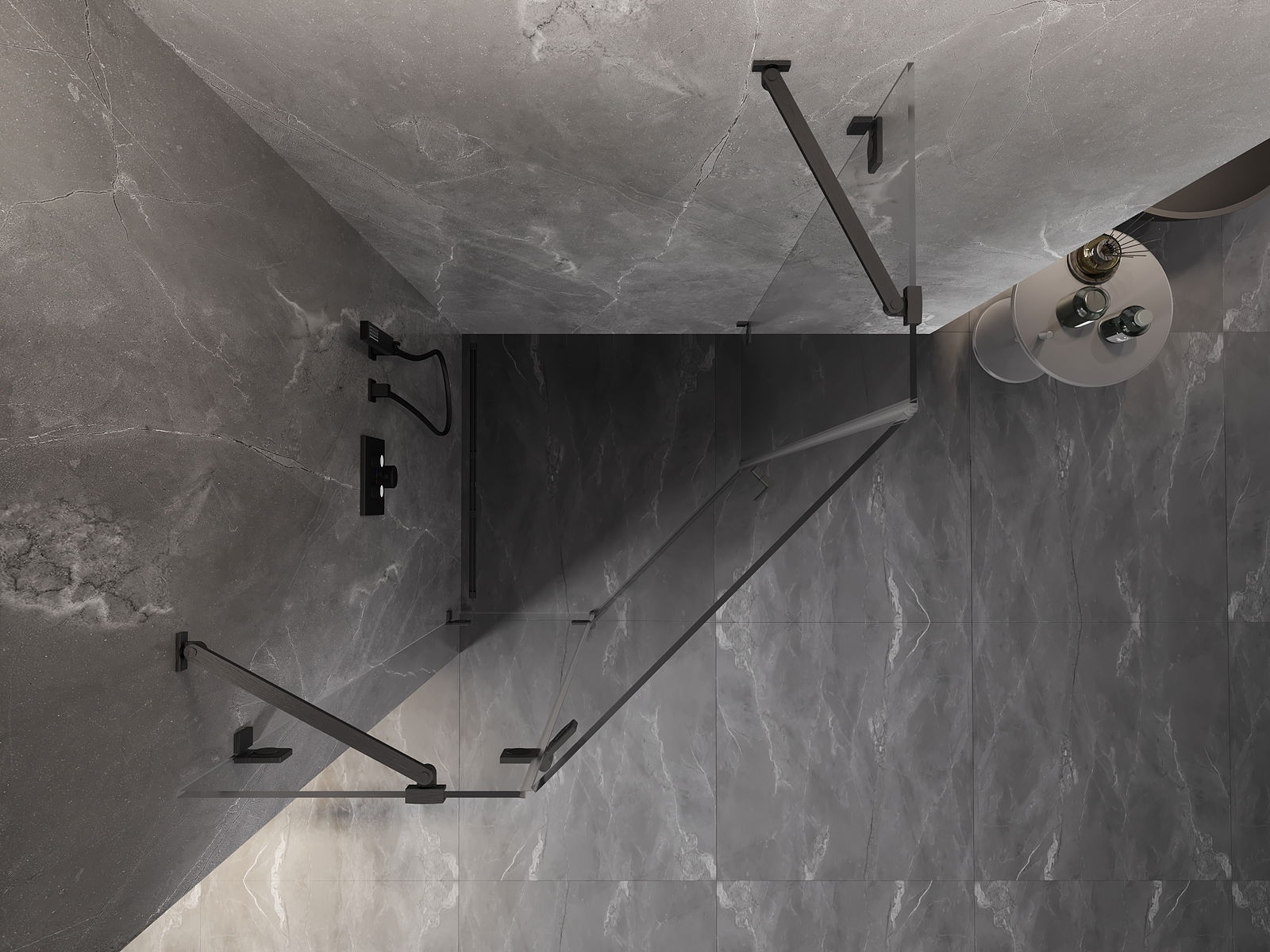 Velikost: 90x90 cm (levé dveře 90 cm, stěna 90 cm)