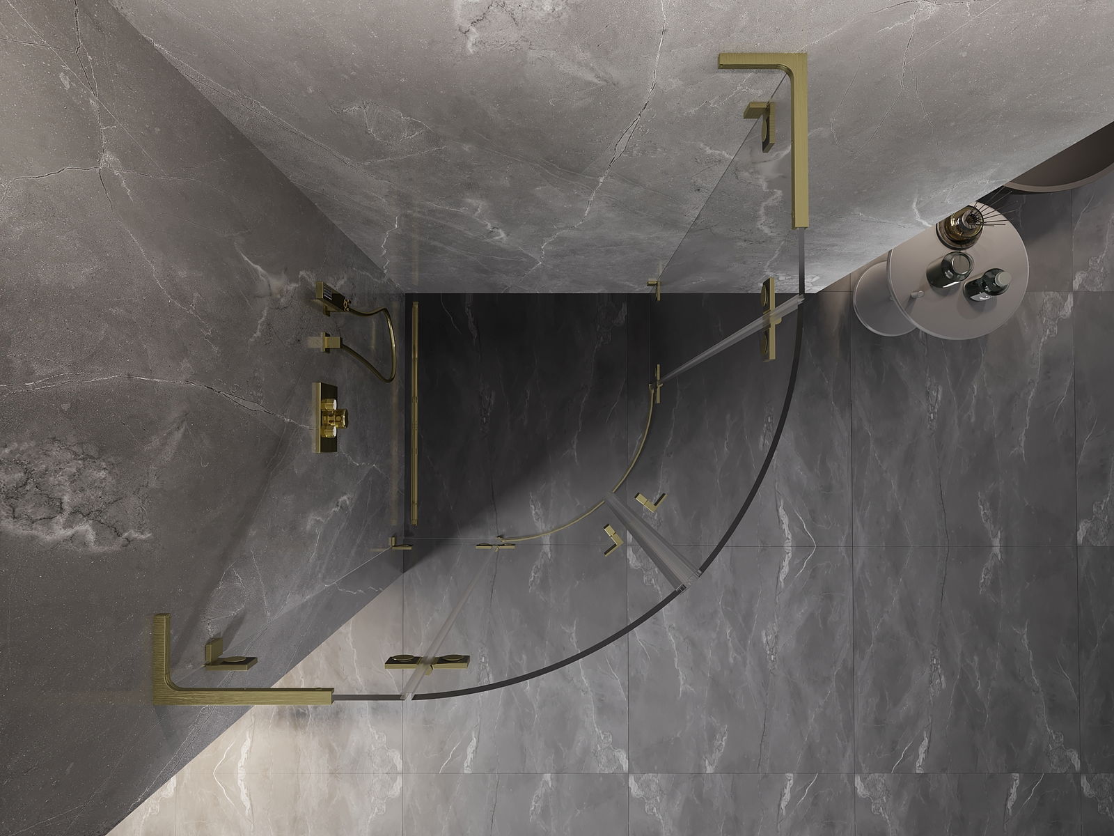 Mexen Lunar L půlkruhová sprchová kabina výkyvná 90 x 90 cm, transparentní, zlatá kartáčovaná - 833L-090L-090P-55-00