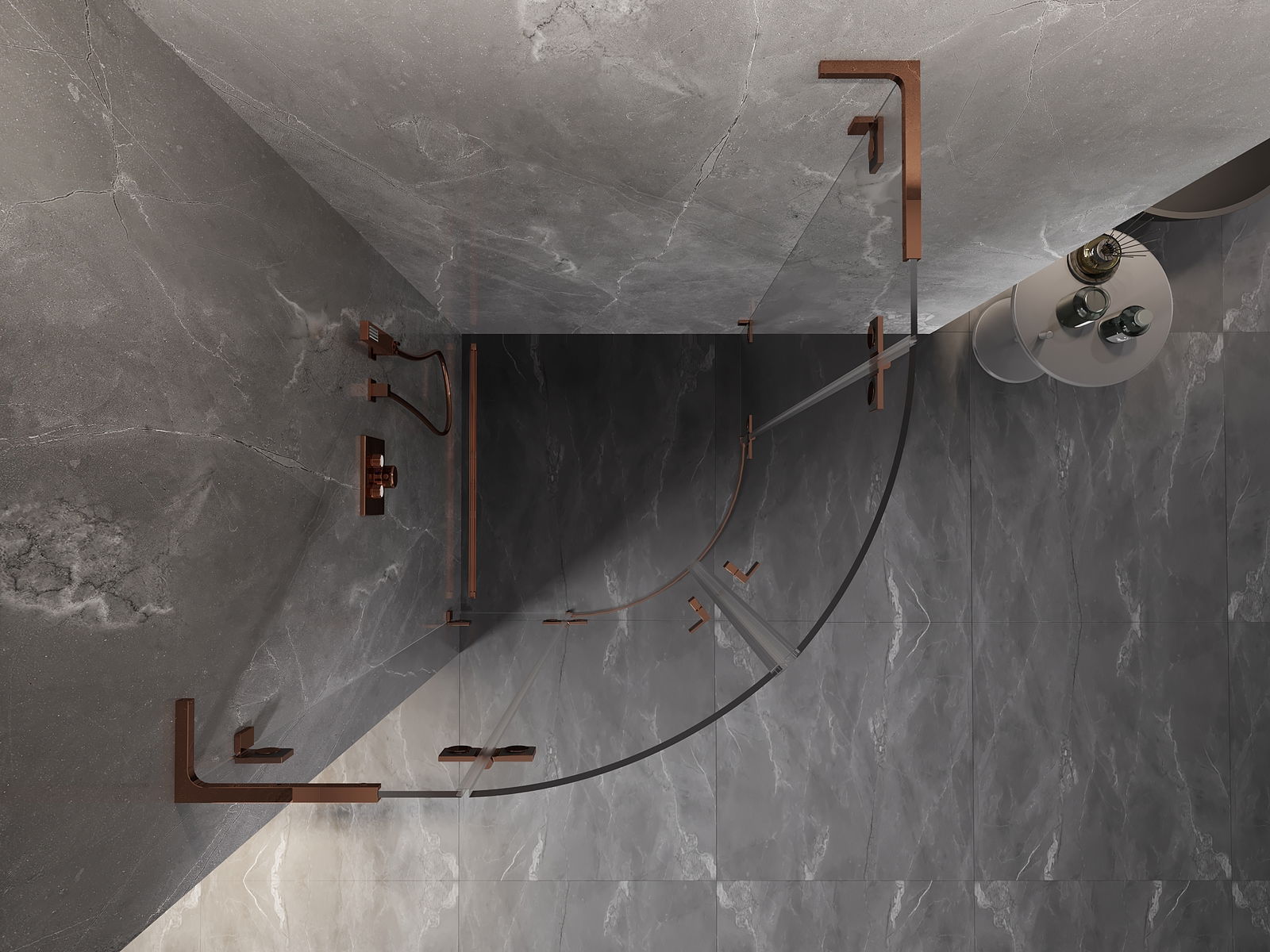 Mexen Lunar L sprchový kout půlkruhový otočný 80 x 80 cm, transparentní, růžové zlato - 833L-080L-080P-60-00