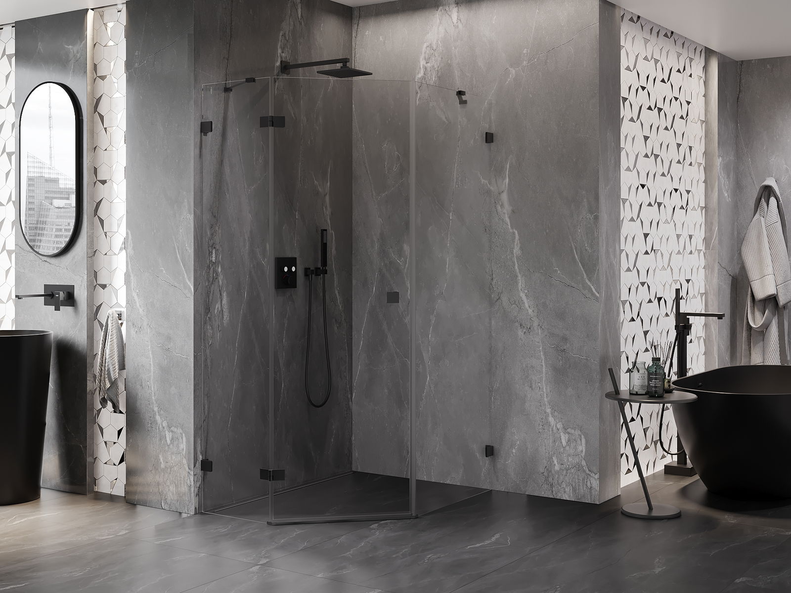 • Mexen Lunar pětistranná sprchová kabina, otevírací levá 90 x 100 cm, transparentní, černá - 831-090L-100P-70-00-L