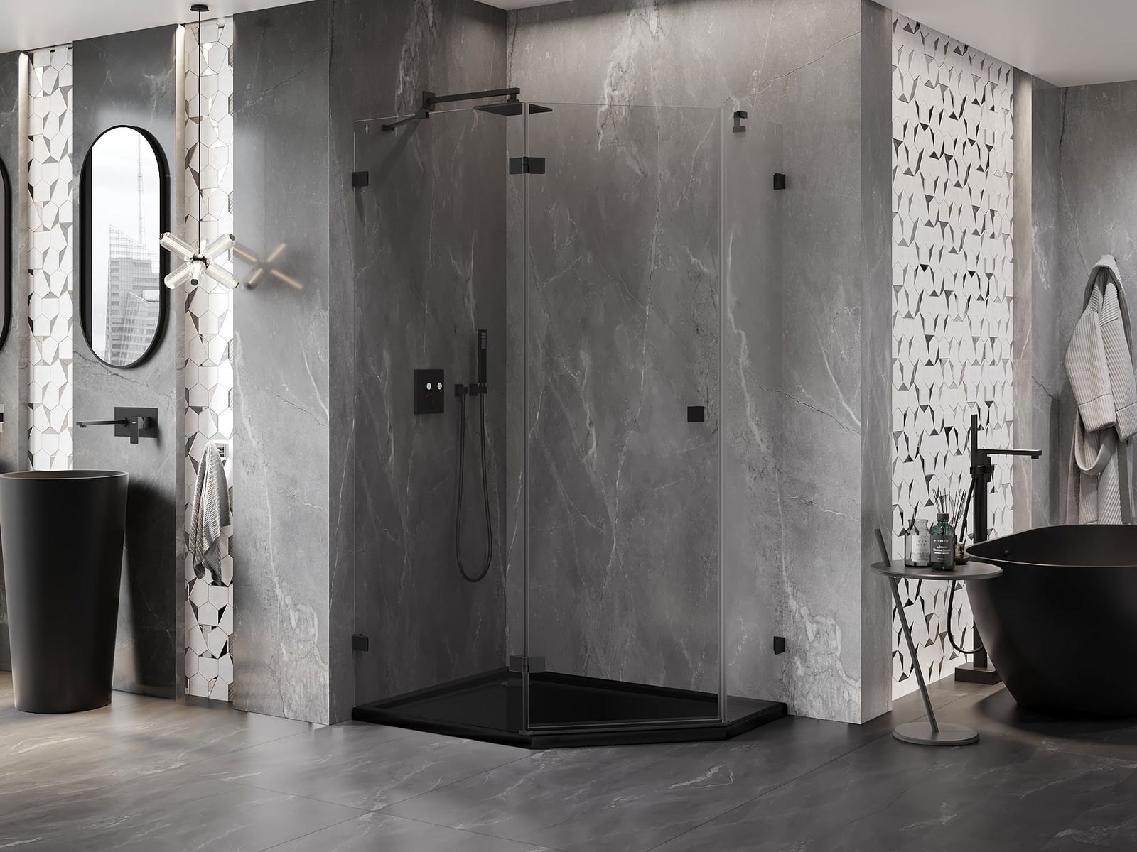 Praktická a pohodlná rukojeť je vyrobena z odolného a trvanlivého kovu. Moderní tvar ve spojení s povrchovou úpravou, která ladí s barvou profilů, dodává celku moderní a stylový vzhled, zdůrazňující estetiku každé koupelny.