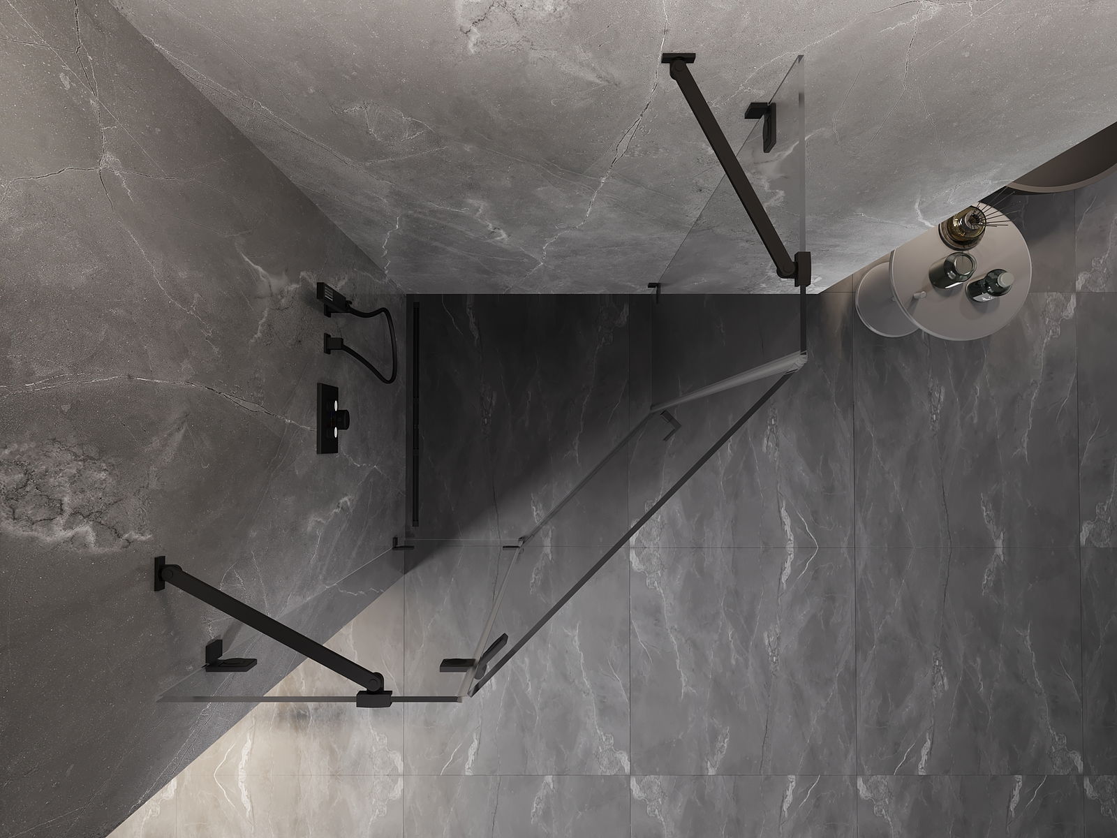 Mexen Lunar kabina sprchová pětiúhelníková otočná levá 100 x 100 cm, průhledná, černá - 831-100L-100P-70-00-L
