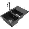 Mexen Gaspar granitový dřez 1,5-komorový s odkapávačem a kuchyňskou baterií Telma, šedý - 6507-71-670200-00