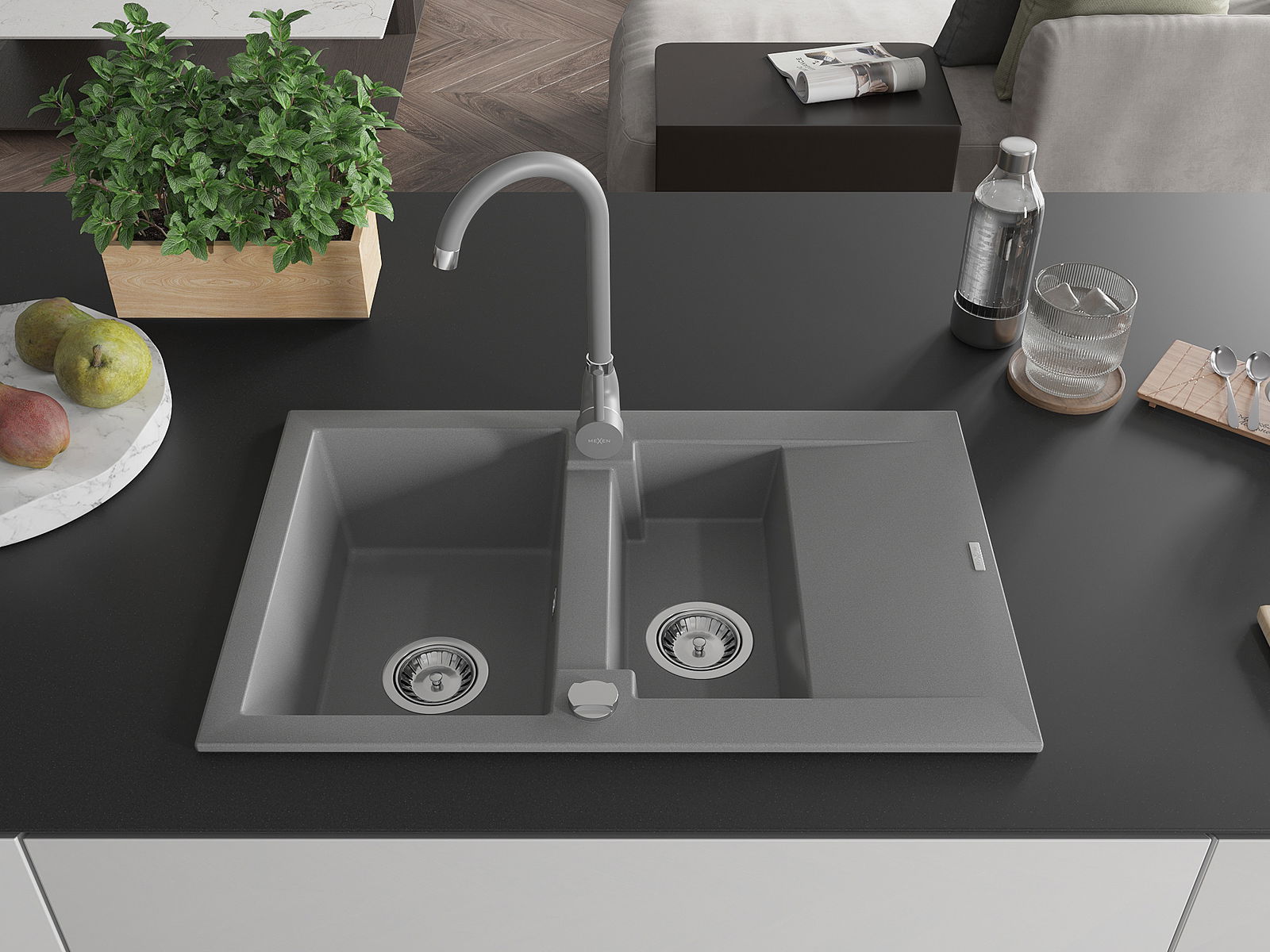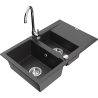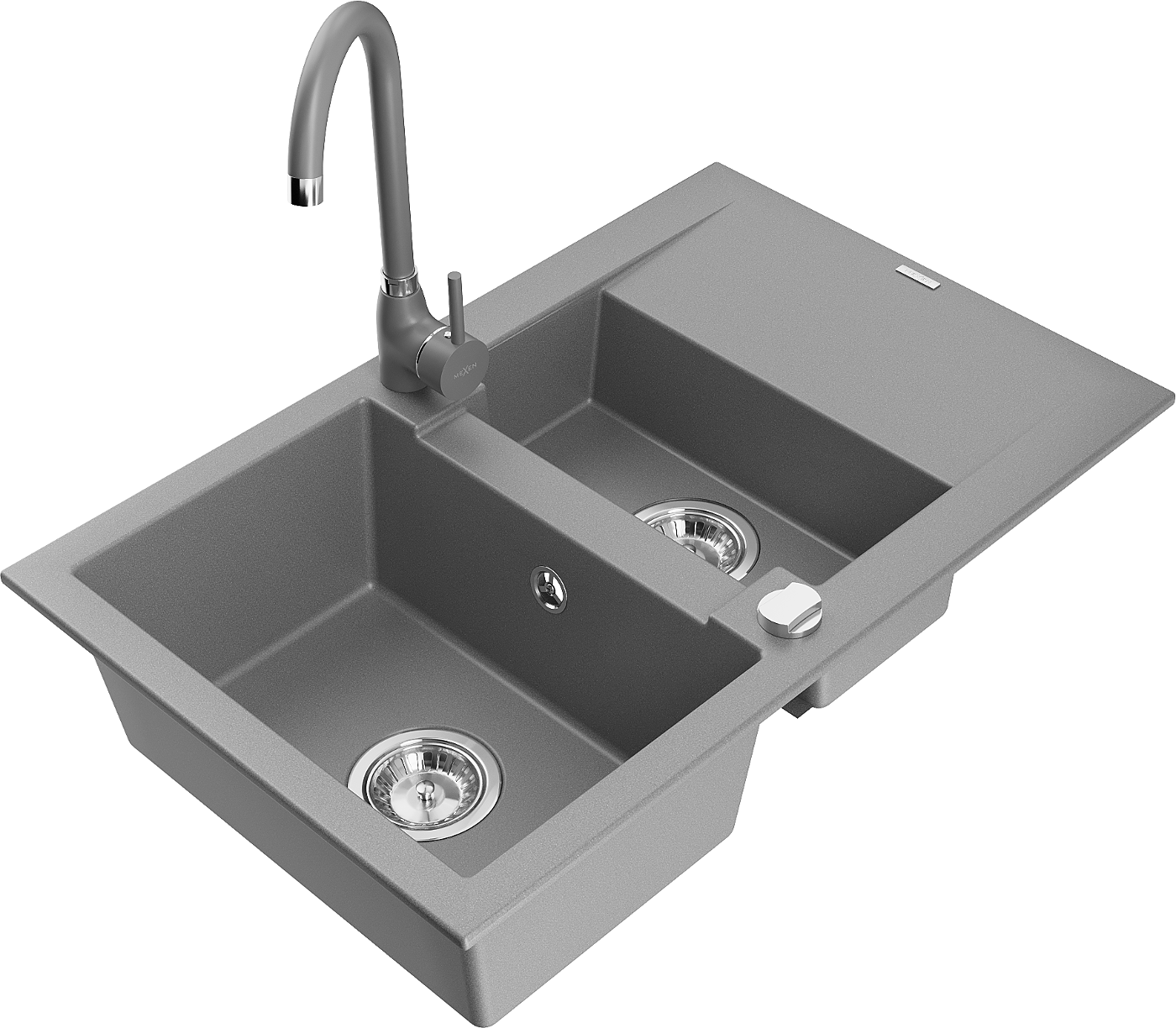 Mexen Gaspar granitový dřez 1,5-komorový s odkapávačem a kuchyňskou baterií Telma, šedý - 6507-71-670200-71