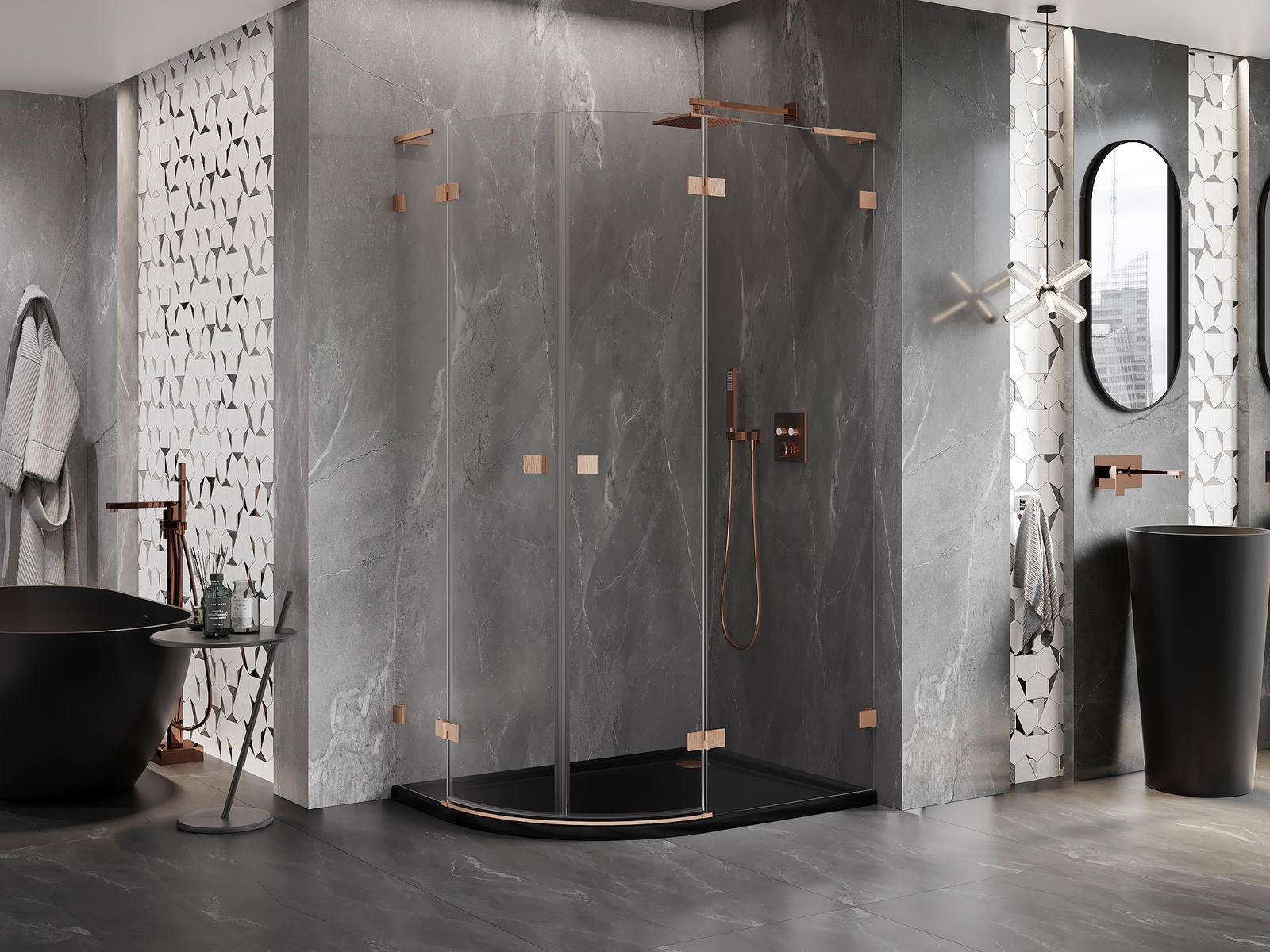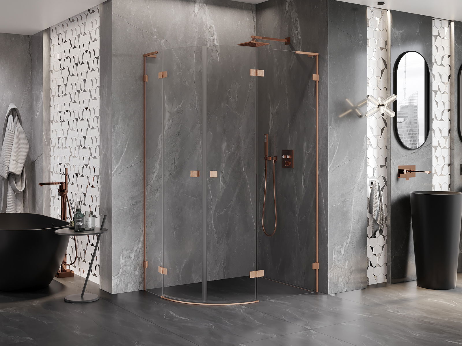 • Mexen Lunar L sprchový kout půlkruhový otočný pravý 80 x 70 cm, transparentní, kartáčovaná měď - 833L-080P-070L-65-00