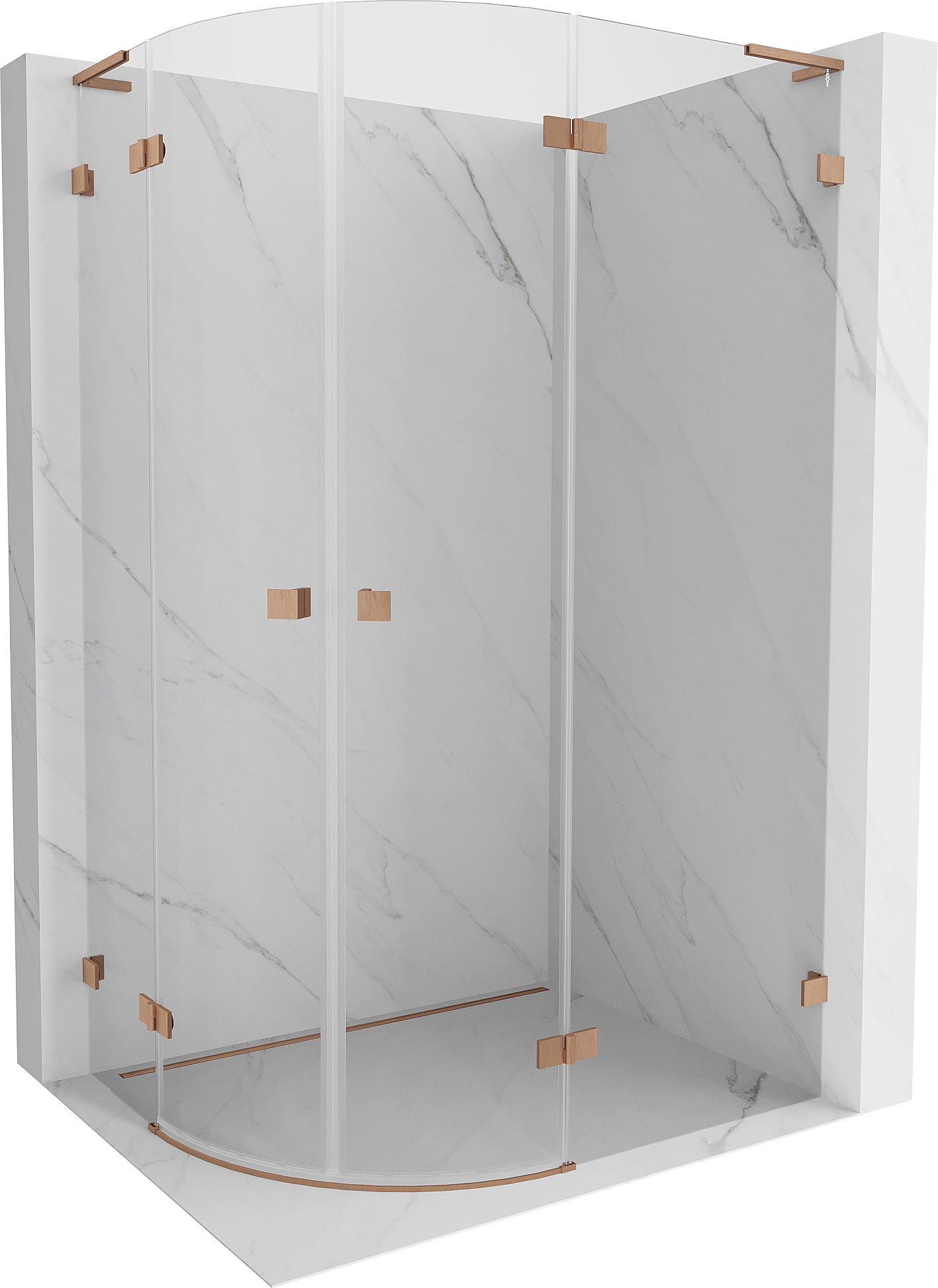 Mexen Lunar L půlkruhová sprchová kabina výklopná pravá 100 x 90 cm, transparentní, kartáčovaná měď - 833L-100P-090L-65-00