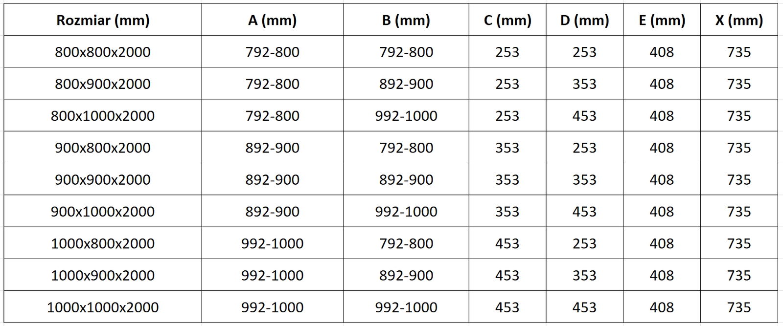 Rozměr: 80x70 cm (pravé dveře 80 cm, levé dveře 70 cm)