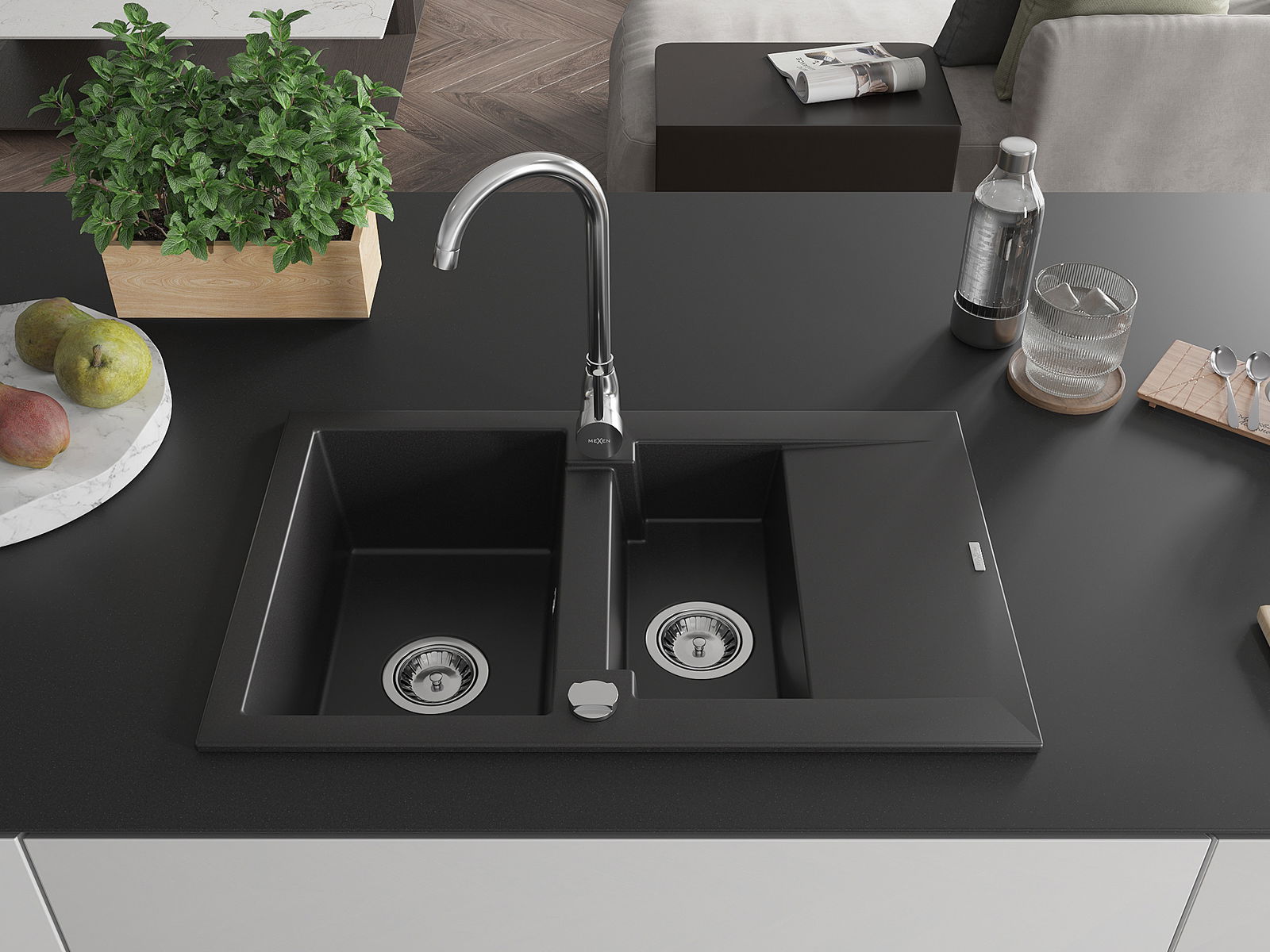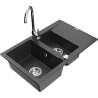 Mexen Gaspar granitový dřez 1,5-komorový s odkapávačem a kuchyňskou baterií Telma, černý - 6507-77-670200-00