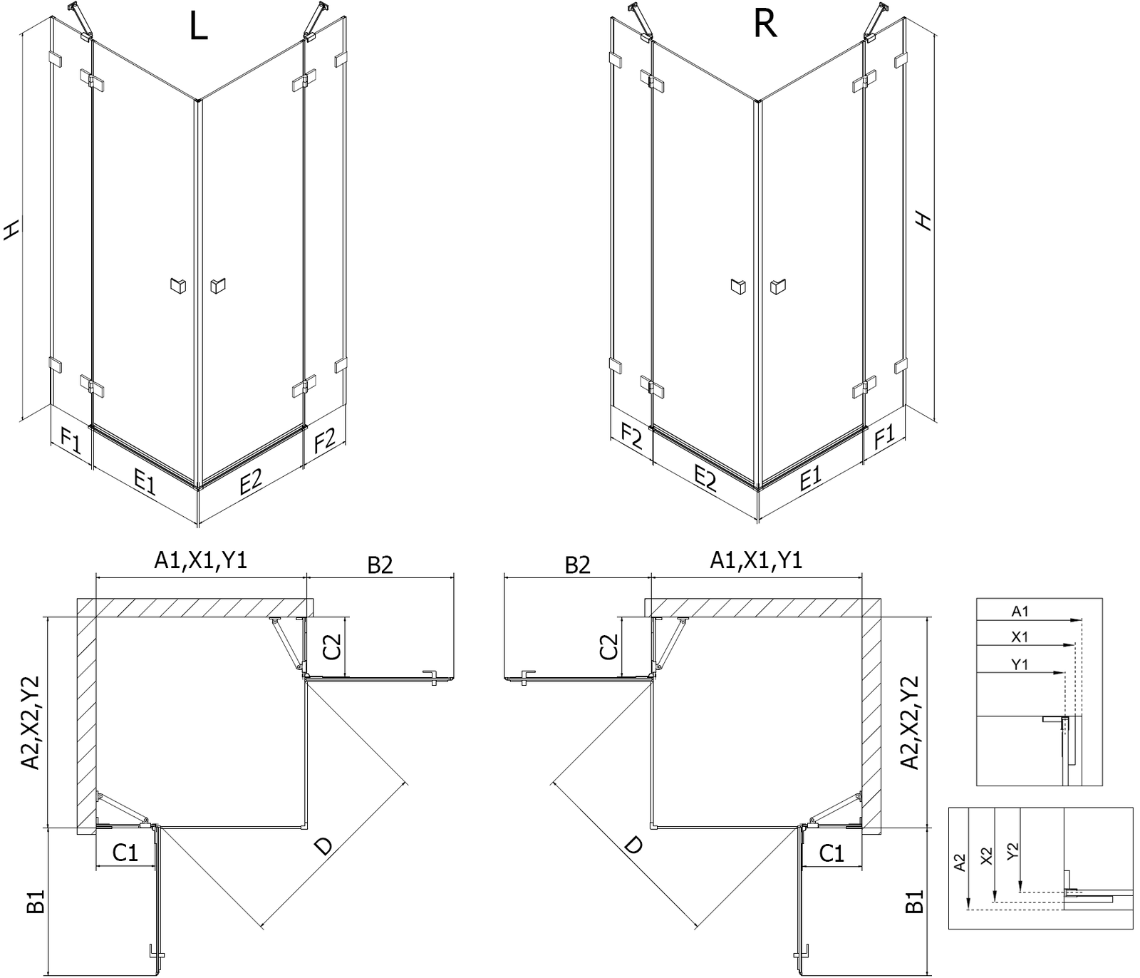 Velikost: 110x100 cm (levé dveře 110 cm, pravé dveře 100 cm)