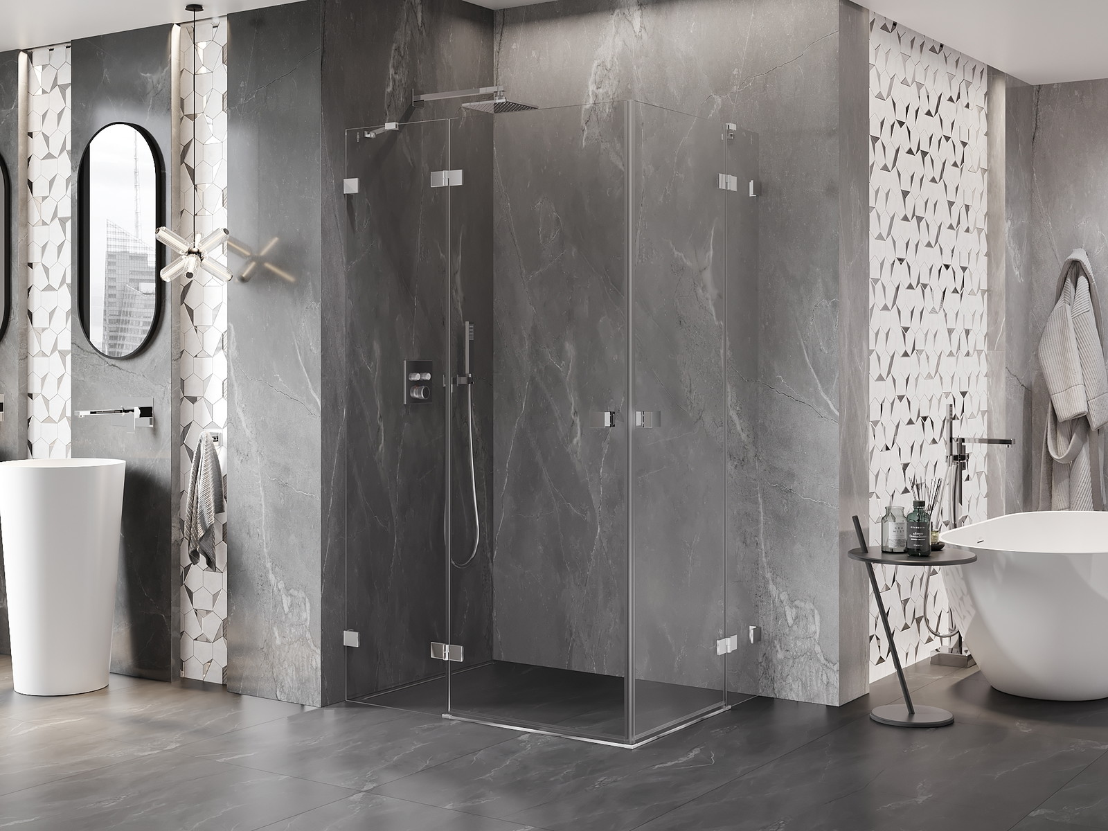 Praktická a pohodlná rukojeť je vyrobena z odolného a trvanlivého kovu. Moderní tvar ve spojení s povrchovou úpravou, která ladí s barvou profilů, dodává celku moderní a stylový vzhled, zdůrazňující estetiku každé koupelny.