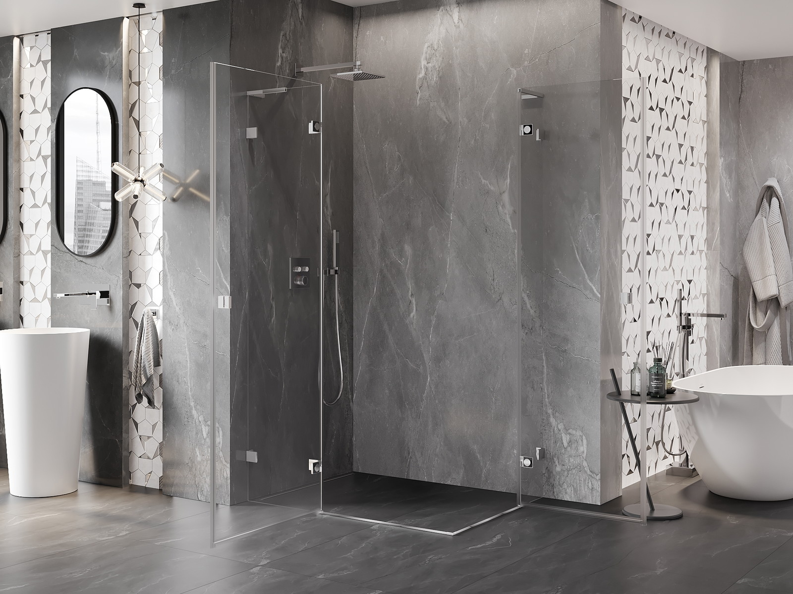 Praktická a pohodlná rukojeť je vyrobena z odolného a trvanlivého kovu. Moderní tvar ve spojení s povrchovou úpravou, která ladí s barvou profilů, dodává celku moderní a stylový vzhled, zdůrazňující estetiku každé koupelny.
