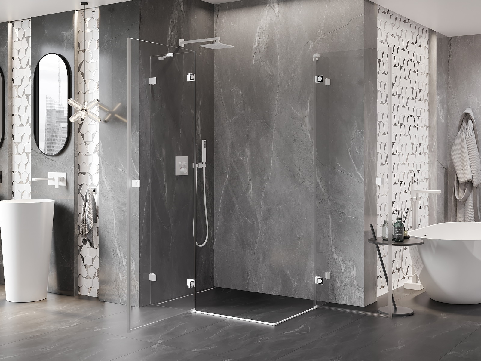 Praktická a pohodlná rukojeť je vyrobena z odolného a trvanlivého kovu. Moderní tvar ve spojení s povrchovou úpravou, která ladí s barvou profilů, dodává celku moderní a stylový vzhled, zdůrazňující estetiku každé koupelny.