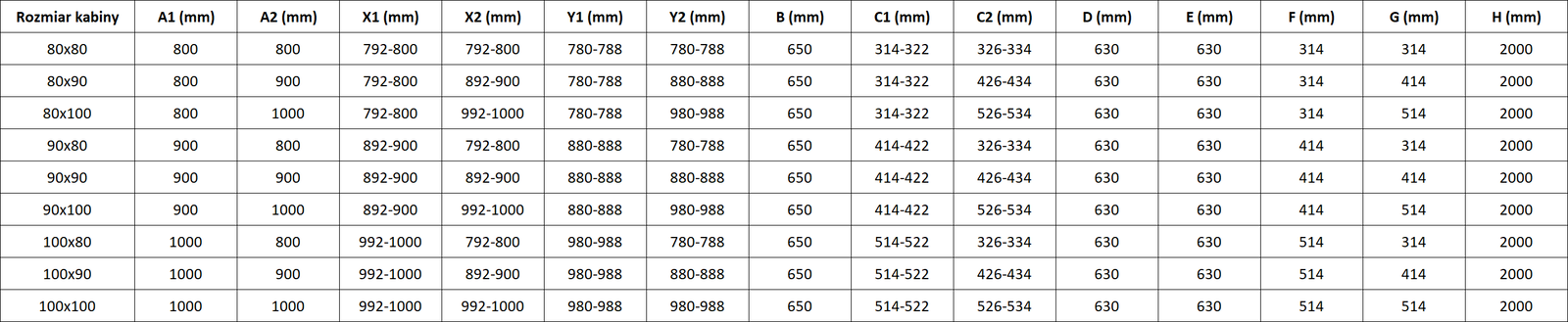 Rozměr: 100x90 cm (levé dveře 100 cm, stěna 90 cm)