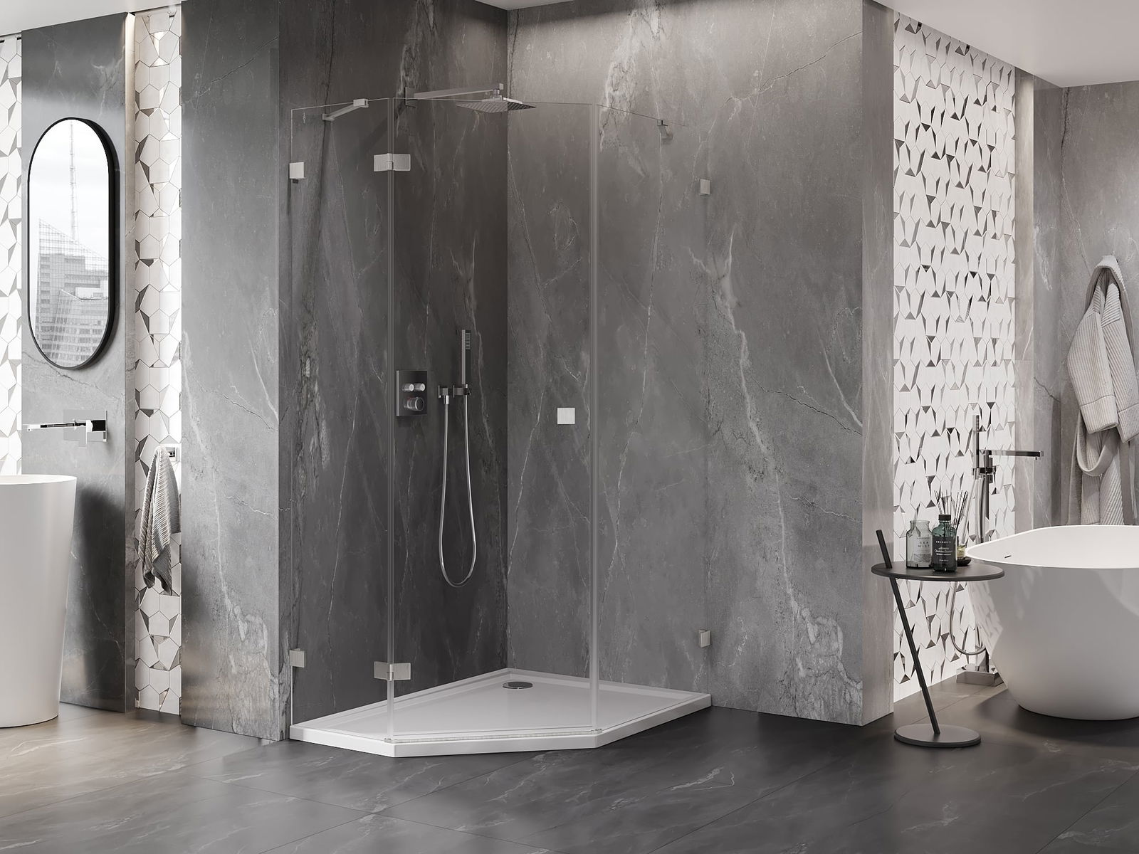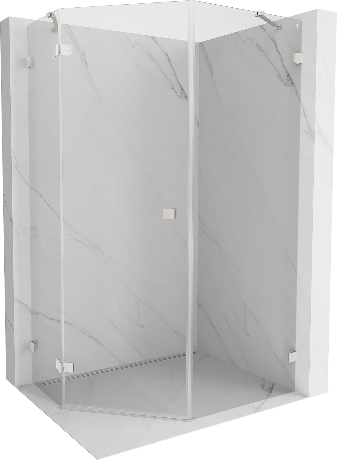 Mexen Lunar kabina sprchová pětiúhelníková otočná levá 80 x 100 cm, transparentní, kartáčovaný nikl