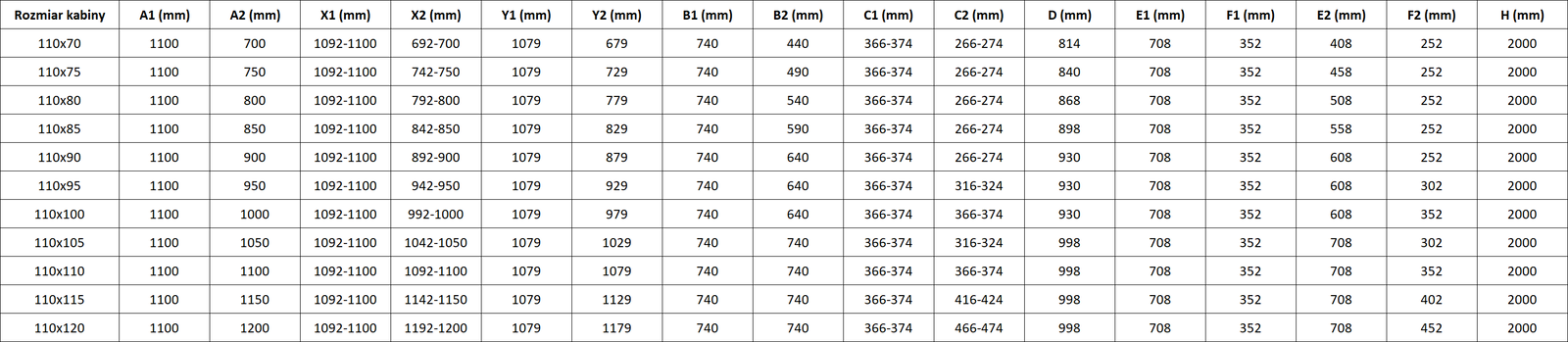 Rozměr: 110x85 cm (levé dveře 110 cm, pravé dveře 85 cm)