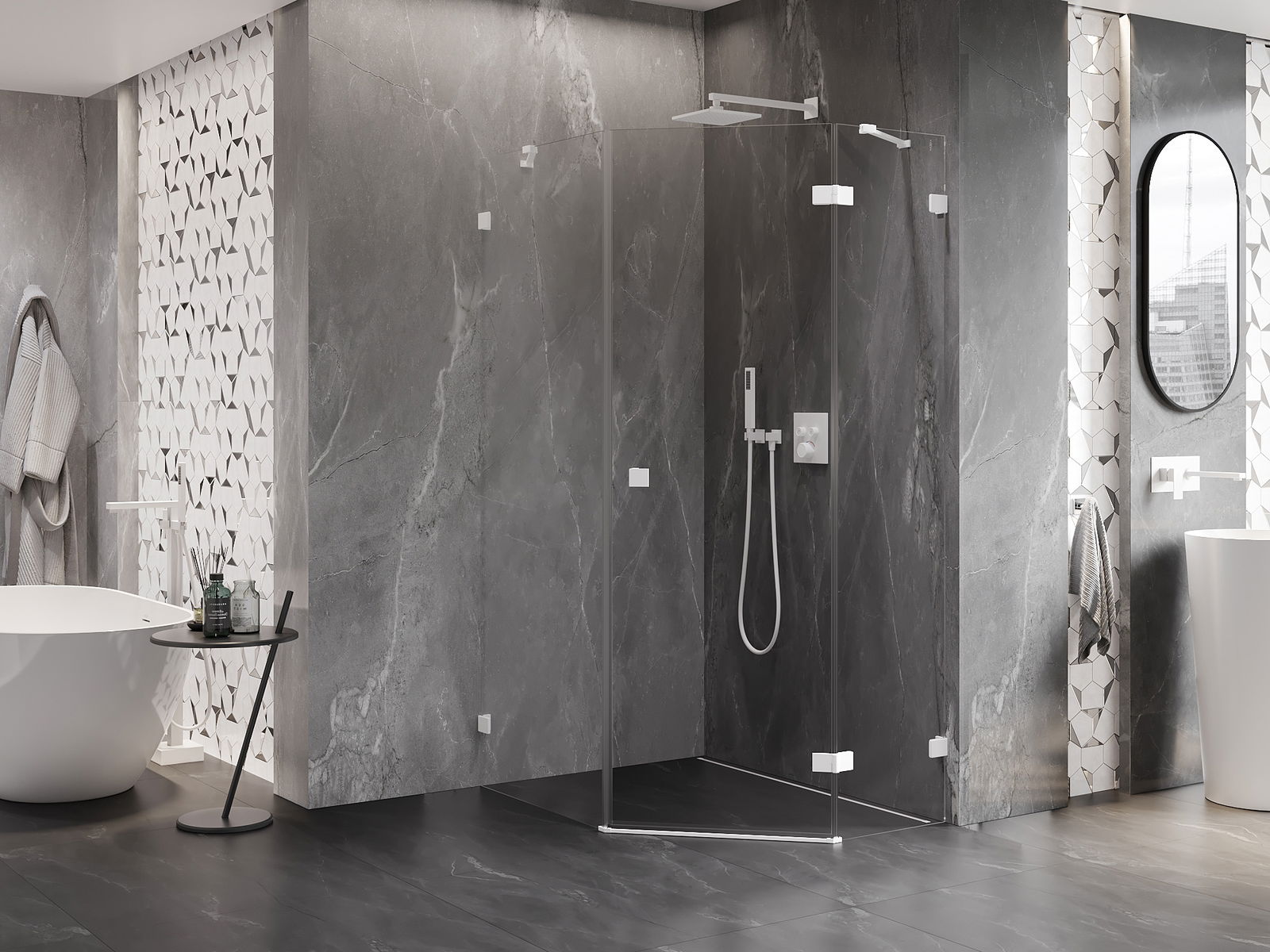 Mexen Lunar pětiúhelníková sprchová kabina výklopná pravá 90 x 100 cm, transparentní, bílá - 831-090P-100L-20-00-P