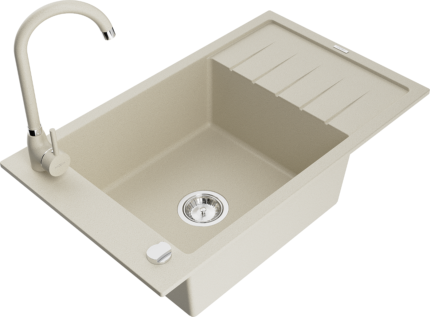 Mexen Elias granitový dřez 1-komorový s odkapávačem a kuchyňskou baterií Telma, béžový - 6511-69-670200-69