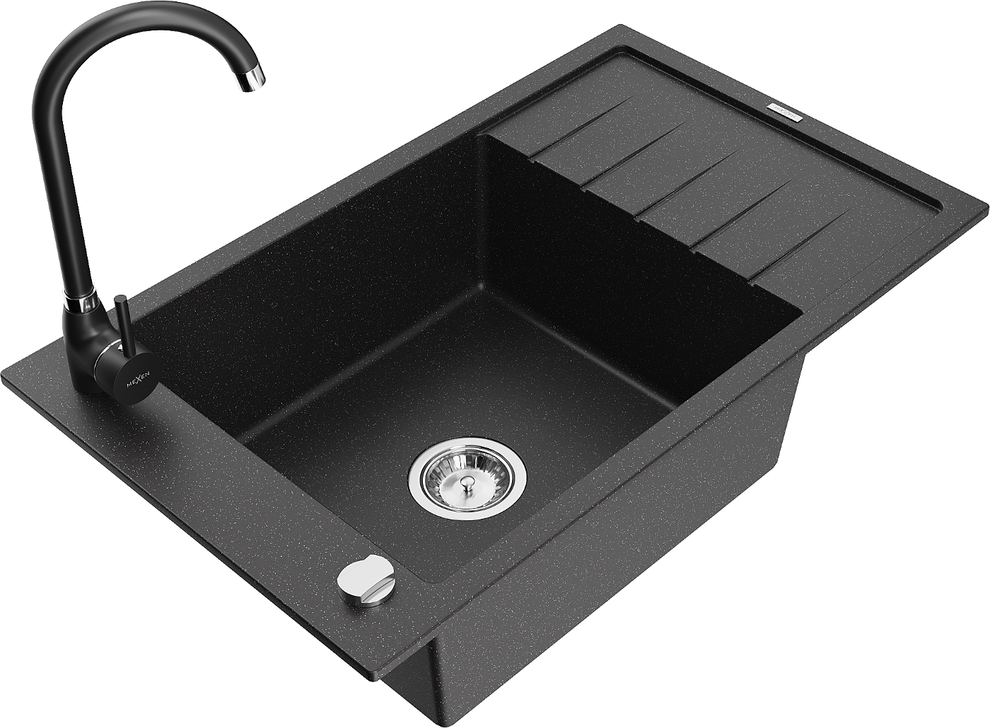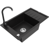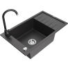 Mexen Elias žulový dřez 1-komorový s odkapávačem a kuchyňskou baterií Telma, černý/stříbrný - 6511-73-670200-70
