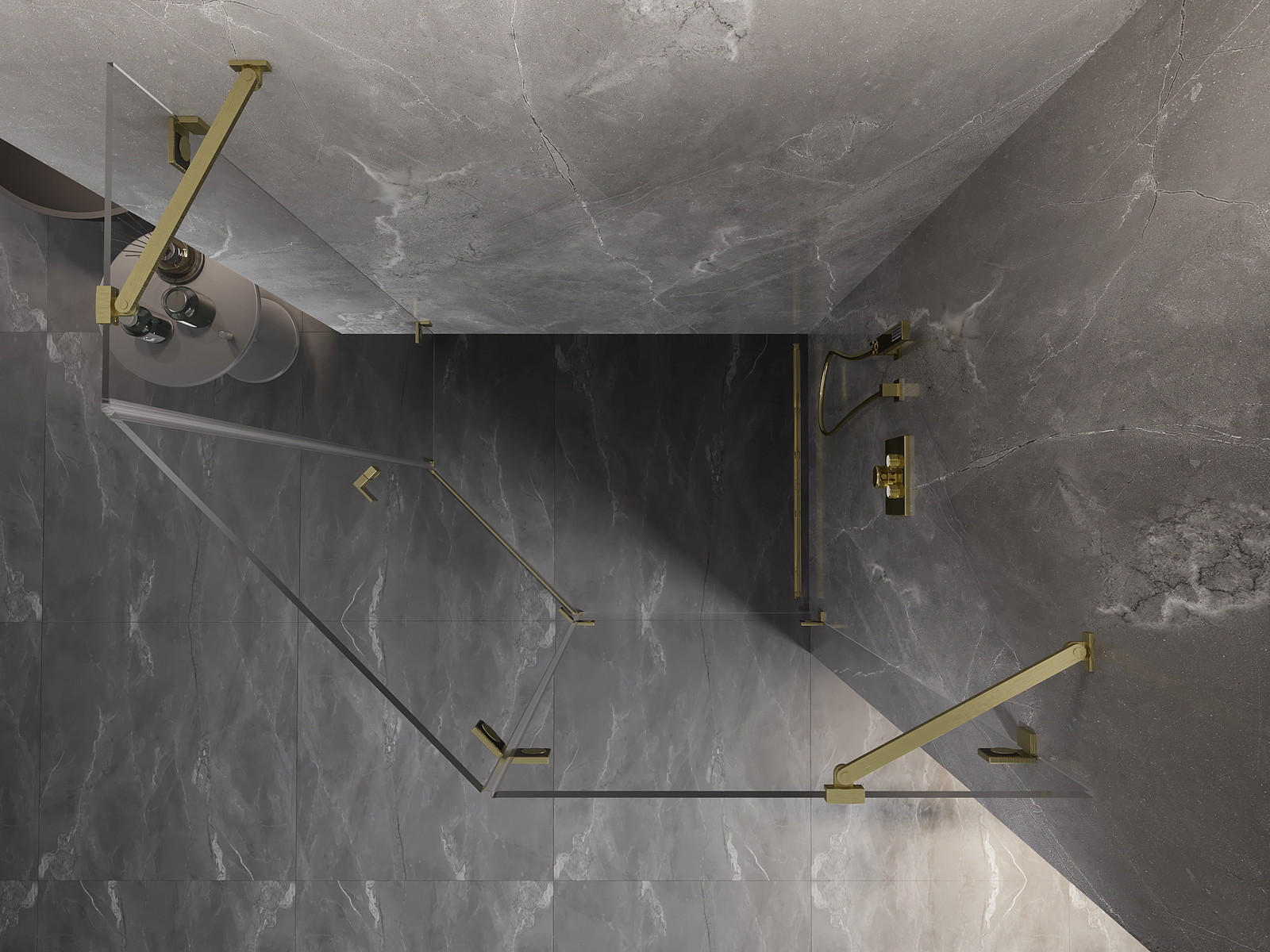 Mexen Lunar kabina sprchová pětiúhelníková výklopná pravá 90 x 80 cm, transparentní, zlatá kartáčovaná