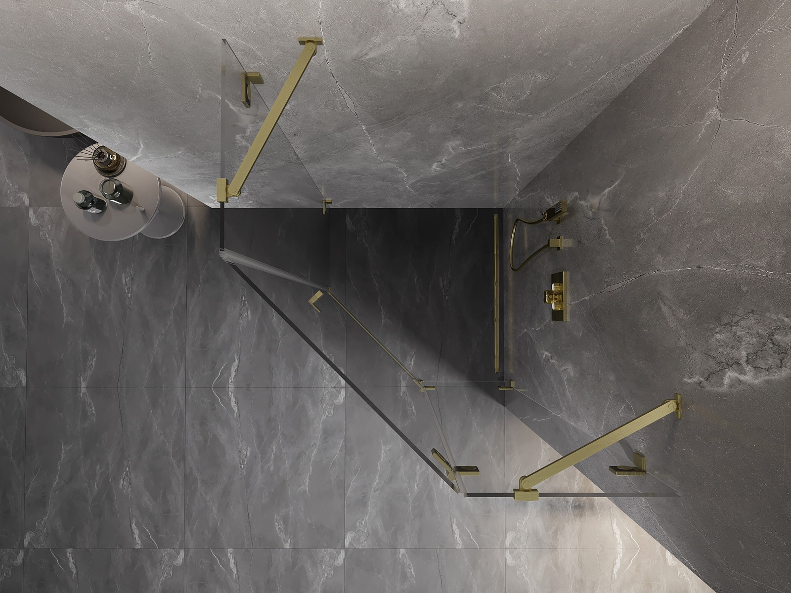Mexen Lunar pětiúhelníkový sprchový kout s pravými otočnými dveřmi 90 x 90 cm, transparentní, matná zlatá