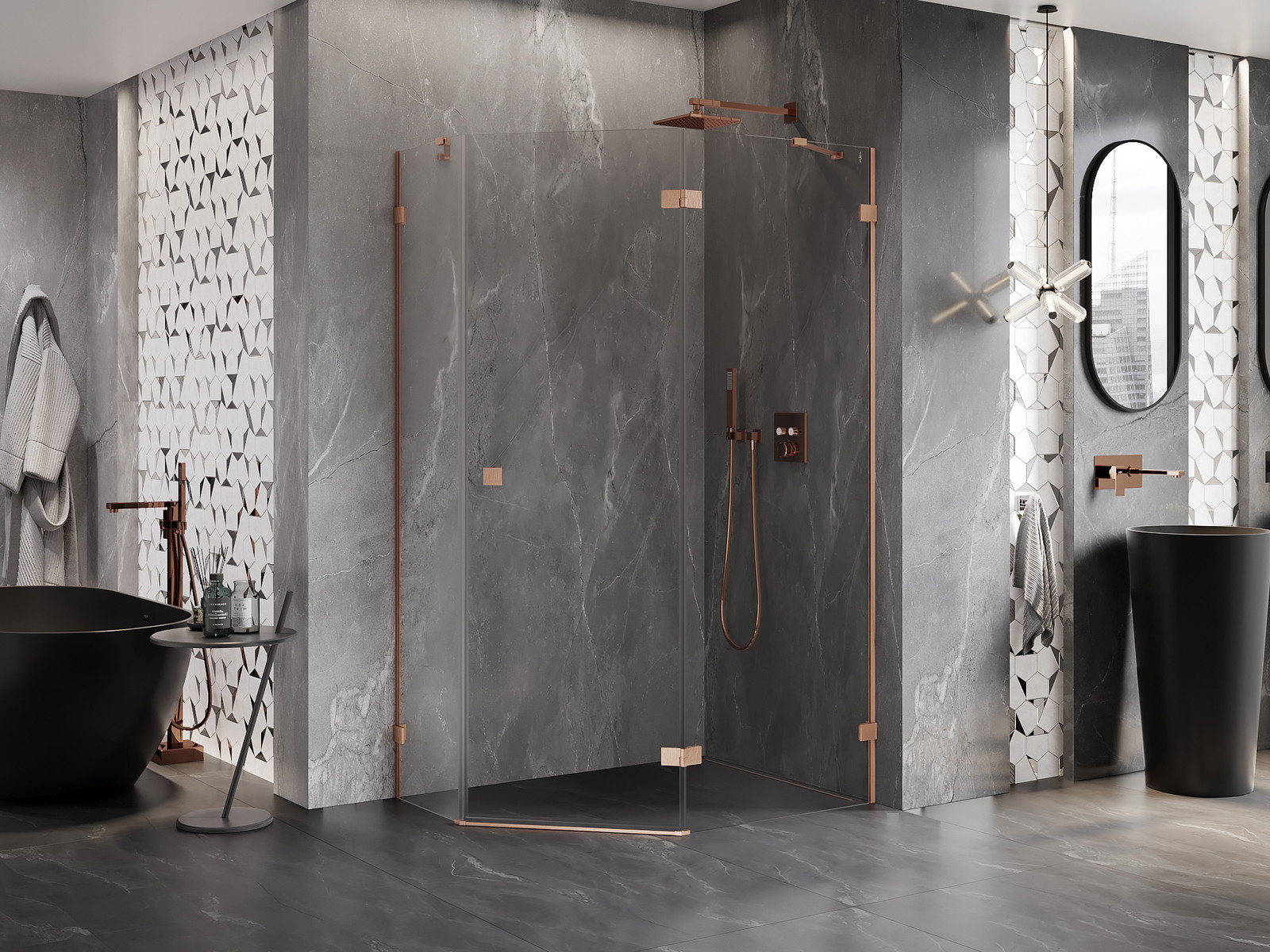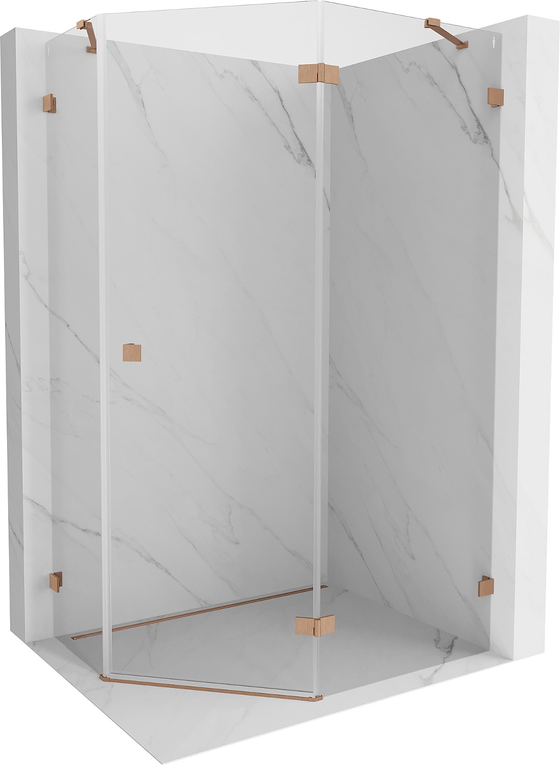 Mexen Lunar pětistranná sprchová kabina pravá 90 x 80 cm, transparentní, kartáčovaná měď - 831-090P-080L-65-00-P