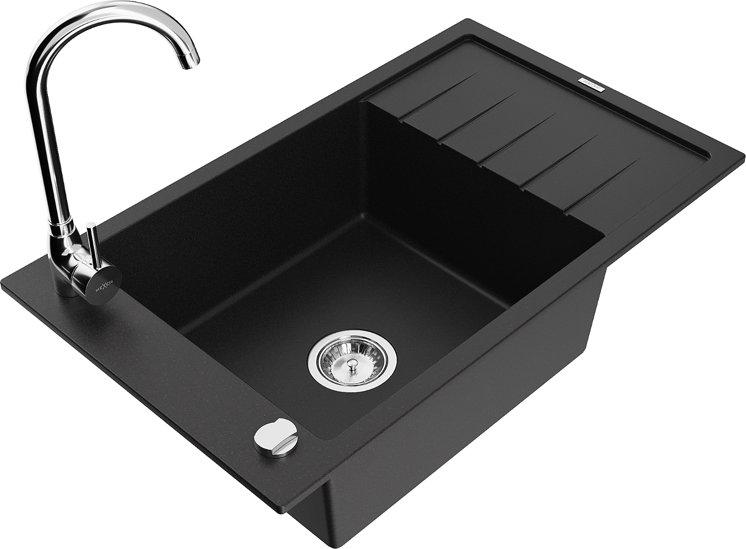 Mexen Elias granitový dřez 1-komorový s odkapávačem a kuchyňskou baterií Telma, černý - 6511-77-670200-00