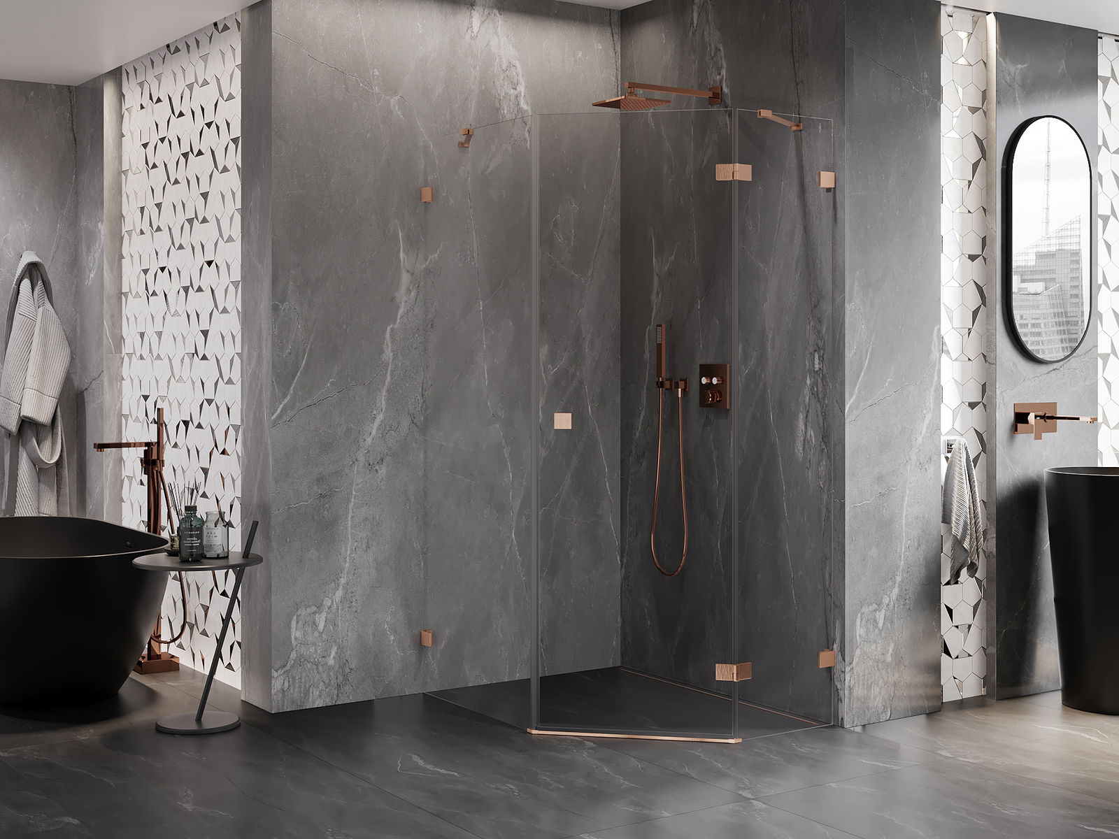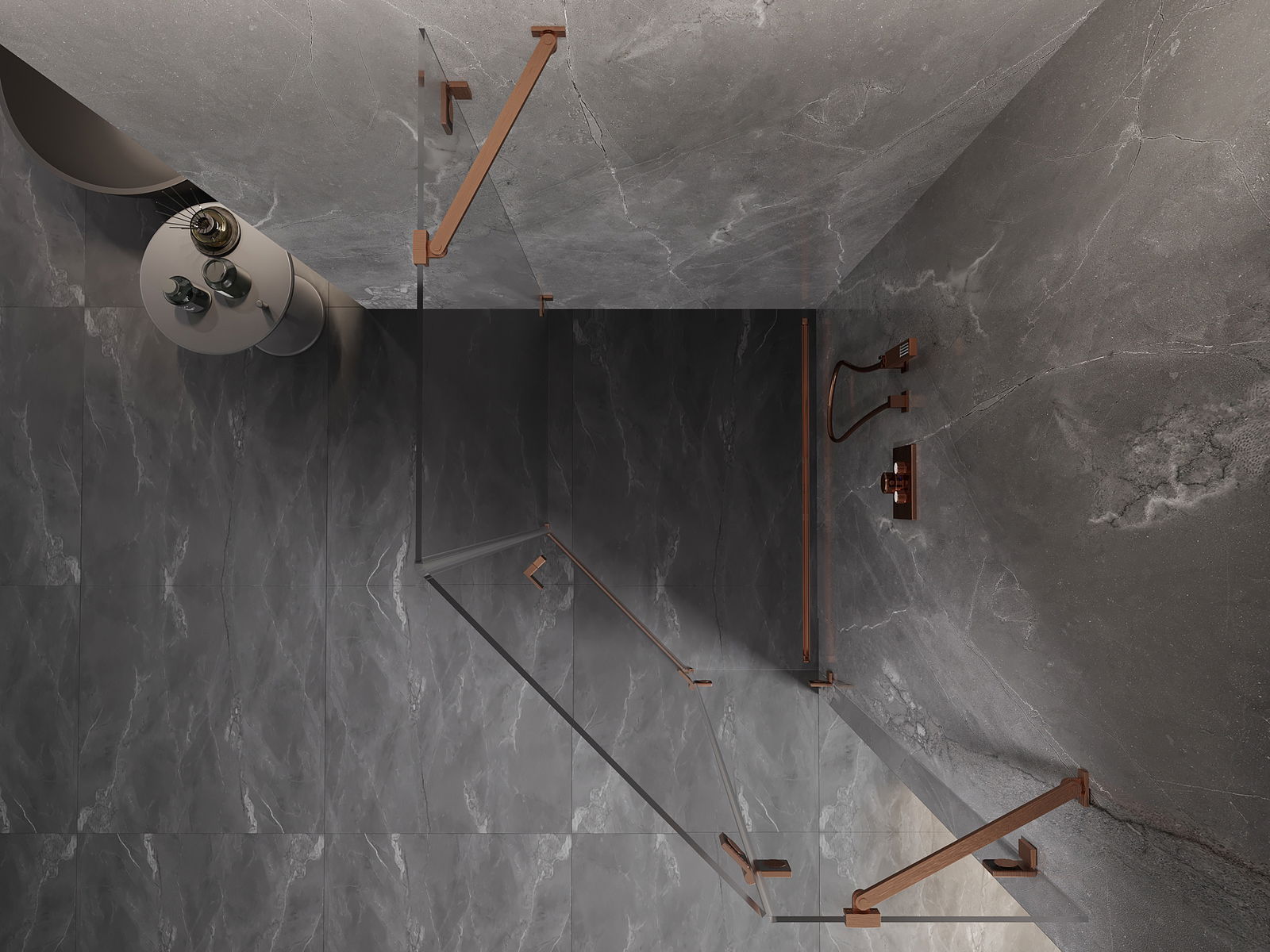 Mexen Lunar pětiúhelníková sprchová kabina pravá 90 x 100 cm, transparentní, kartáčovaná měď - 831-090P-100L-65-00-P