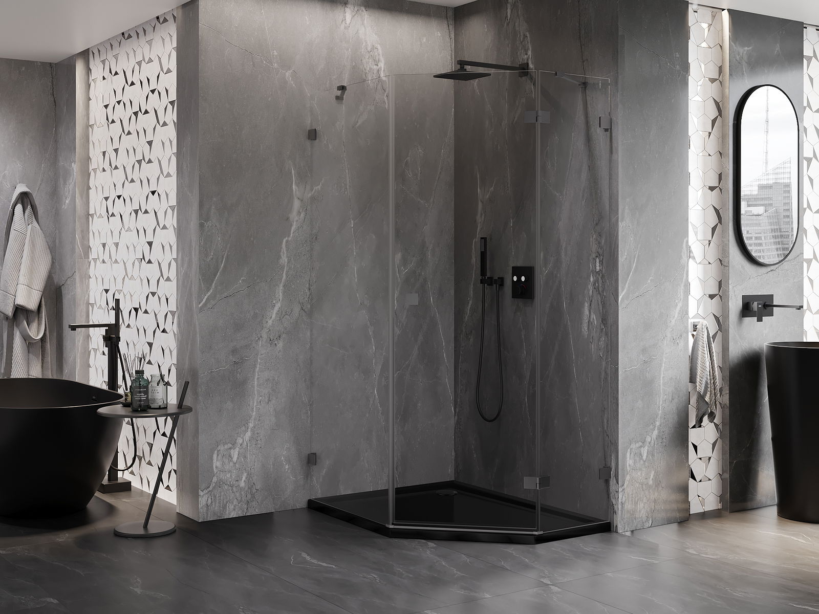 Mexen Lunar pětiúhelníková sprchová kabina pravá 80 x 100 cm, transparentní, gun metal - 831-080P-100L-95-00-P