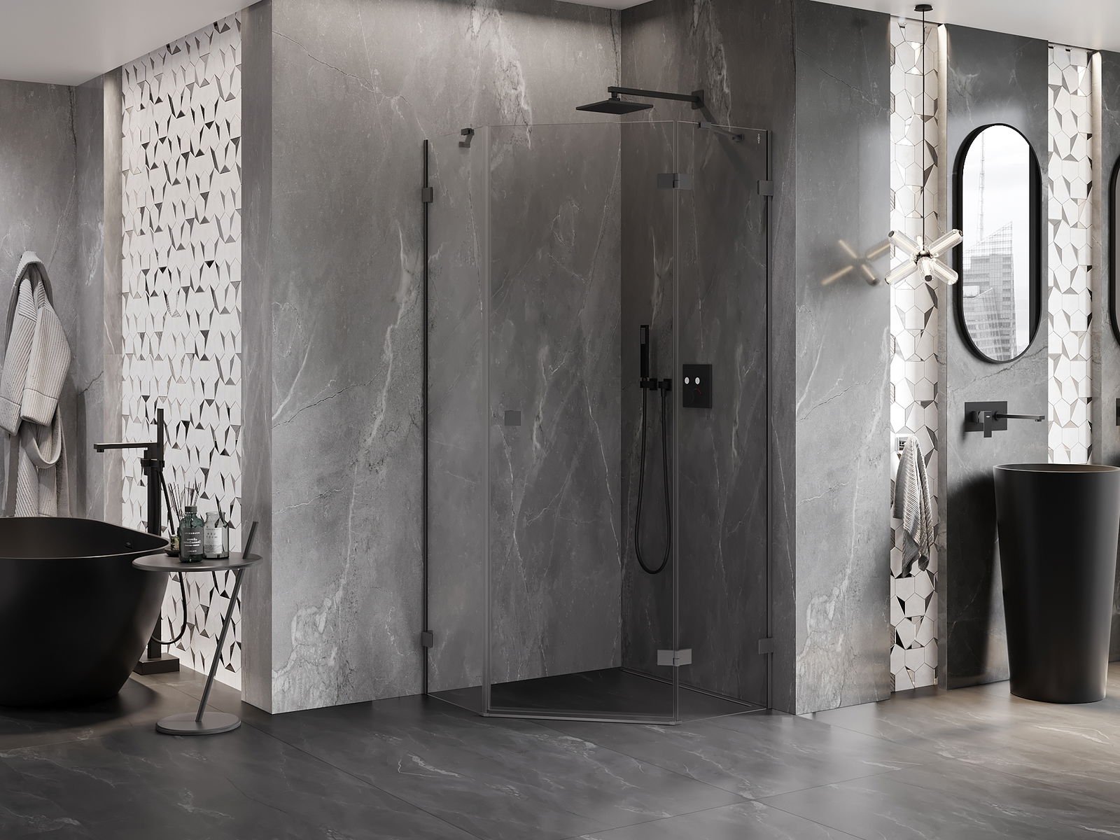 • Mexen Lunar pětiúhelníkový sprchový kout, pravý 90 x 90 cm, transparentní, gun metal - 831-090P-090L-95-00-P
